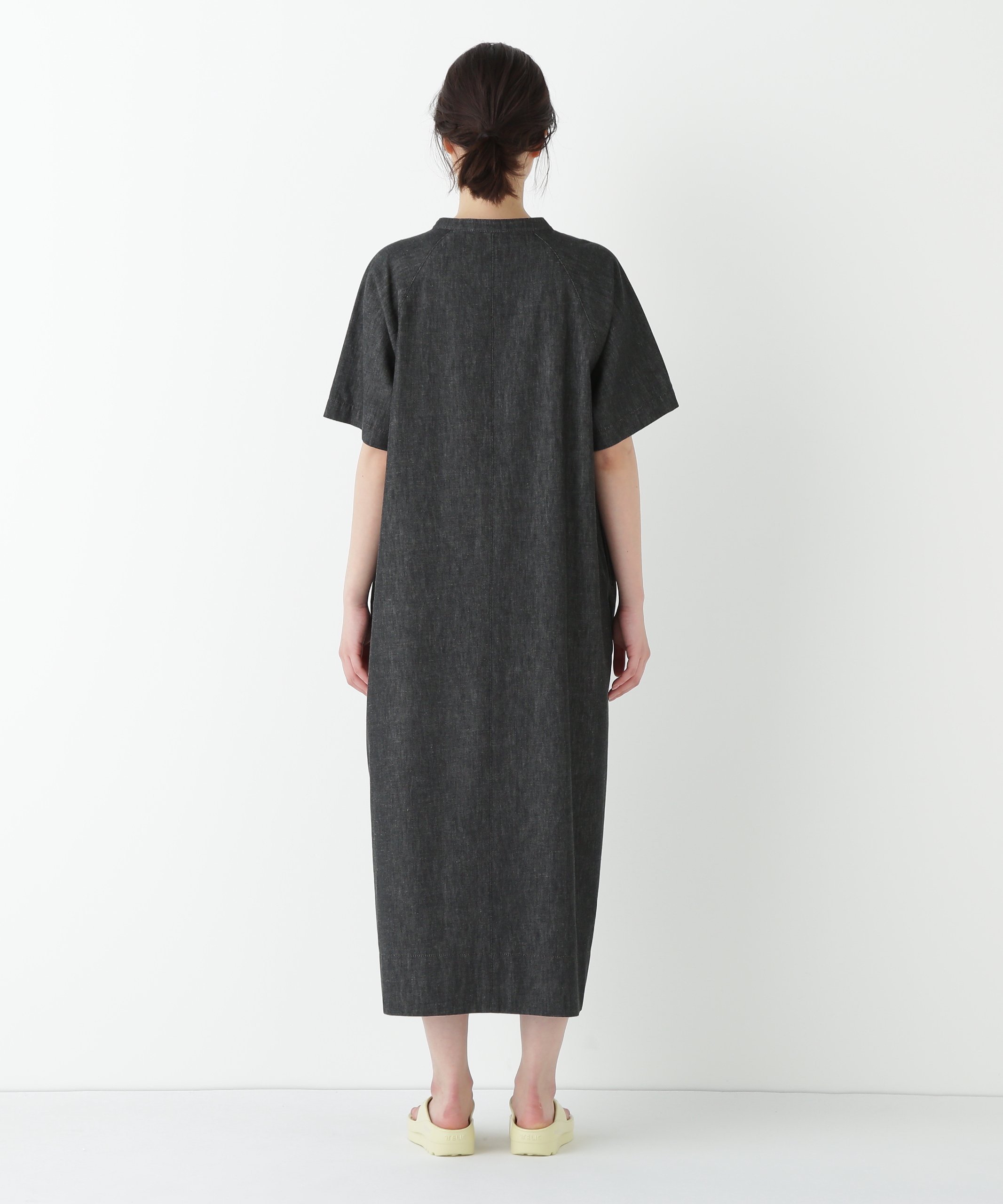 Это платье с рукавами реглан имеет традиционный вид с нижней панелью. Свободный крой делает его удобным в ношении. Темная строчка добавляет шика.