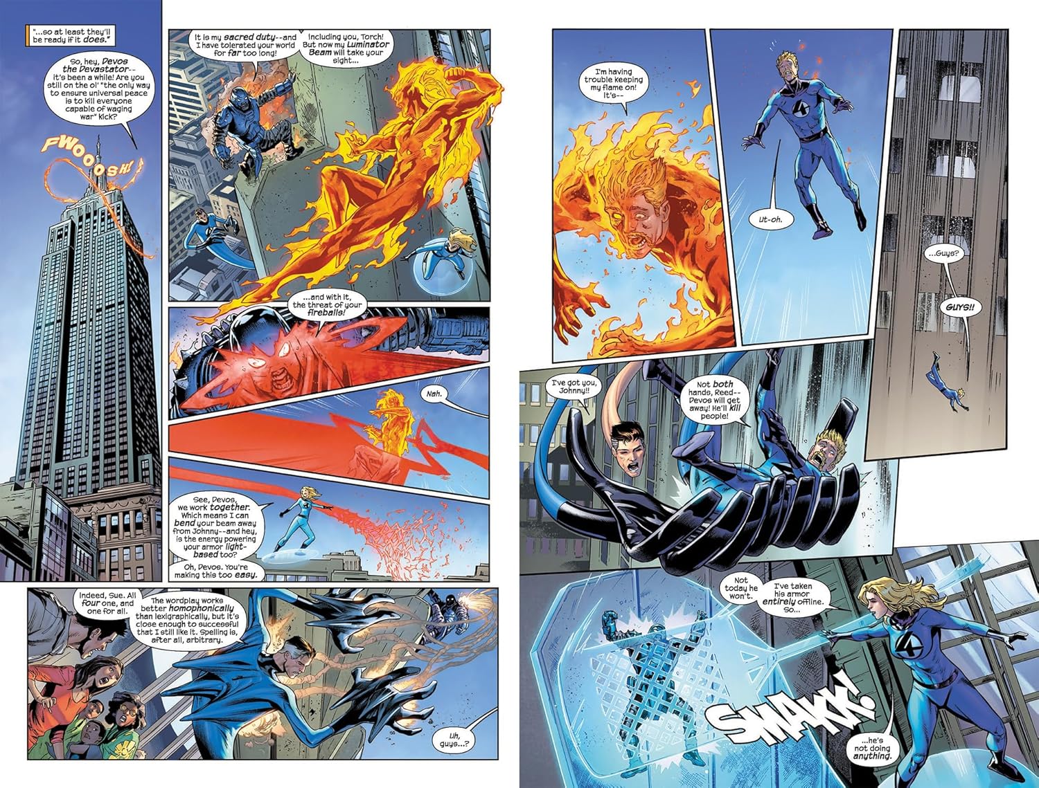 Невозможное случилось! Доктор Дум захватил мир! И Фантастическая четверка не собирается это терпеть. Пока Рид запирается в своей лаборатории, пытаясь решить проблему Дума, Бен угощает Сью поездкой в ​​Нью-Йорк с их общей подругой Женщиной-Халк, чтобы отвлечь ее от проблем. Но когда Бен, Сью и Джен оказываются по другую сторону самосуда, им предстоит сделать выбор - и это выбор, который они не смогут отменить! А когда Существо терпит ужасное (и очень публичное) поражение от рук Дума, он остается потерянным, сбитым с толку и более уязвимым, чем был за последние годы. Как только Бен начинает приходить в себя, Фантастическая четверка узнает, что теряет свои силы - именно тогда, когда они им больше всего нужны! Если они не смогут обратить вспять этот эффект, их силы могут быть потеряны навсегда - и Дум станет непобедимым! И все это плюс Намор, Подводник!
