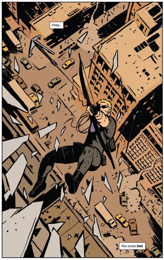 «Завязка сюжета, о супергерое в его свободные дни, - это именно та история о супергероях, которую я хотел бы рассказать как писатель. Меня это так зацепило. Меня так привлекли эти маленькие моменты, эти трогательные человеческие мгновения, а также графика. Я много времени посвящаю похвалам Мэтта Фракшена, но стиль [художника] Дэвида Аджи в этих комиксах, а также цветовая гамма Мэтта Холлингсворта - это нечто особенное и графически потрясающее». - Джонатан Игла, главный сценарист и исполнительный продюсер сериала Disney+ «Соколиный глаз» и бывший сценарист сериала «Безумцы».