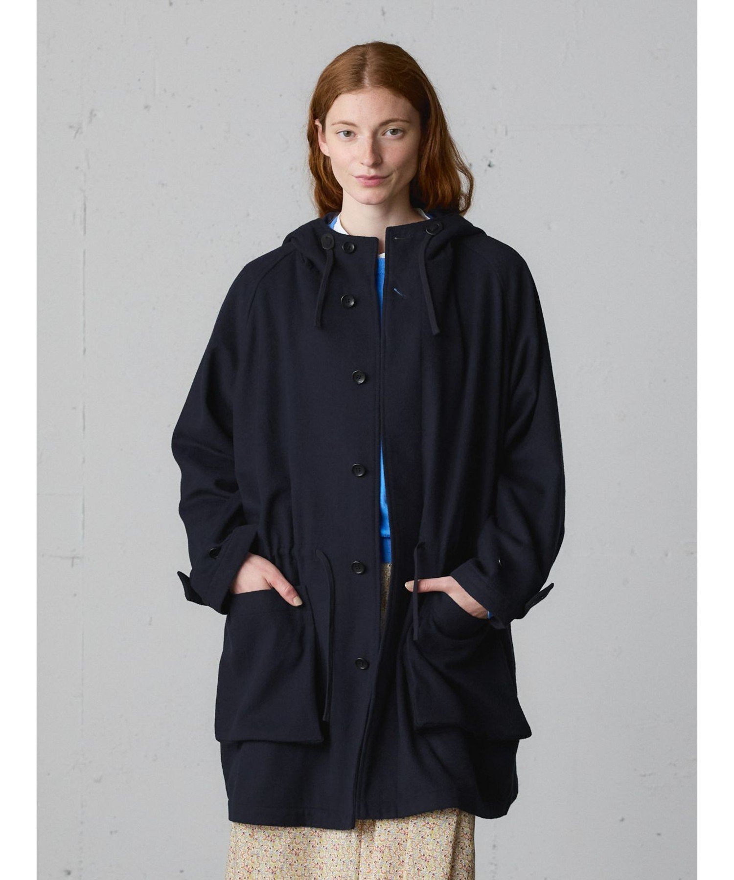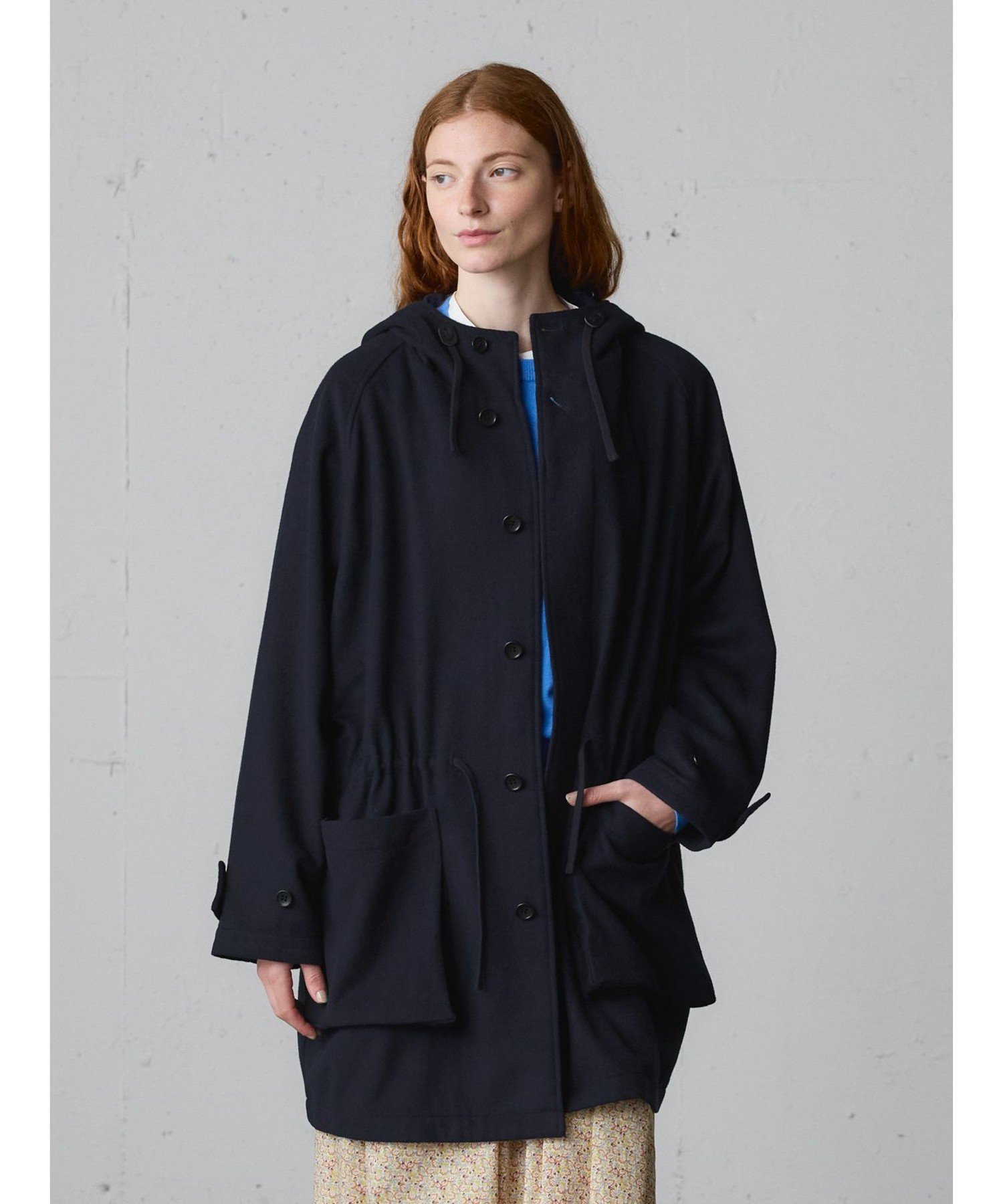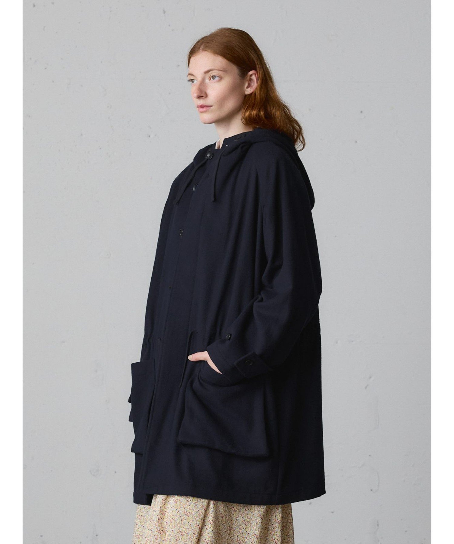 Это шерстяное пальто с капюшоном изготовлено из тонкой фланели из шерсти и полиэстера. Это легкое пальто, сшитое из цельного куска ткани. Рабочий стиль пальто в стиле модерн заменен фланелью для более изысканного вида. Оно имеет большие карманы и небольшой капюшон. Длина и размер позволяют легко носить его даже невысоким людям. Оно сочетается с широким спектром стилей, от повседневного до традиционного. Доступно в базовых цветах — темно-синем и сером, оба варианта пальто рассчитаны на длительное ношение. Также в этой же серии доступен: 3-779945/Пальто-дафлкот.