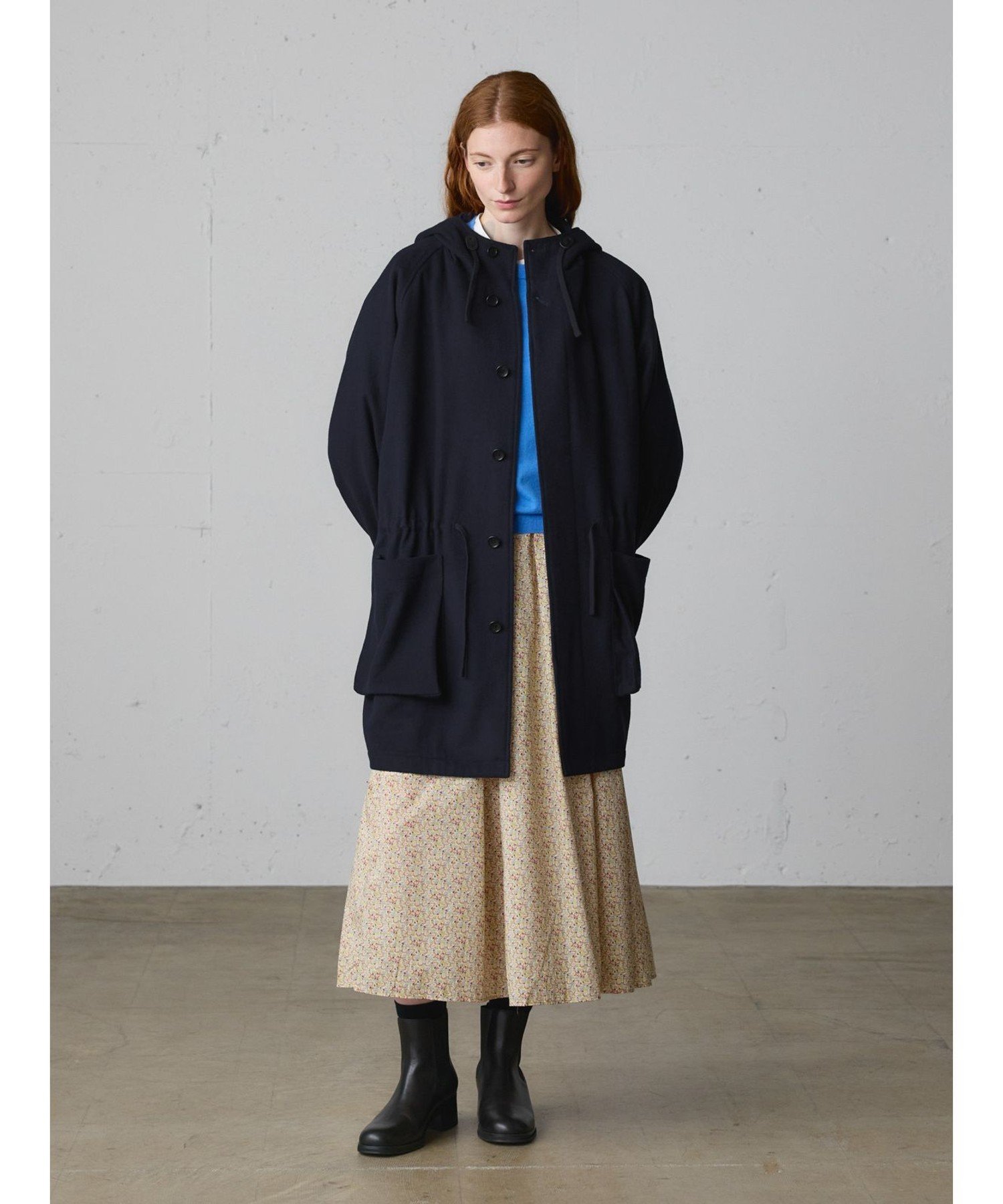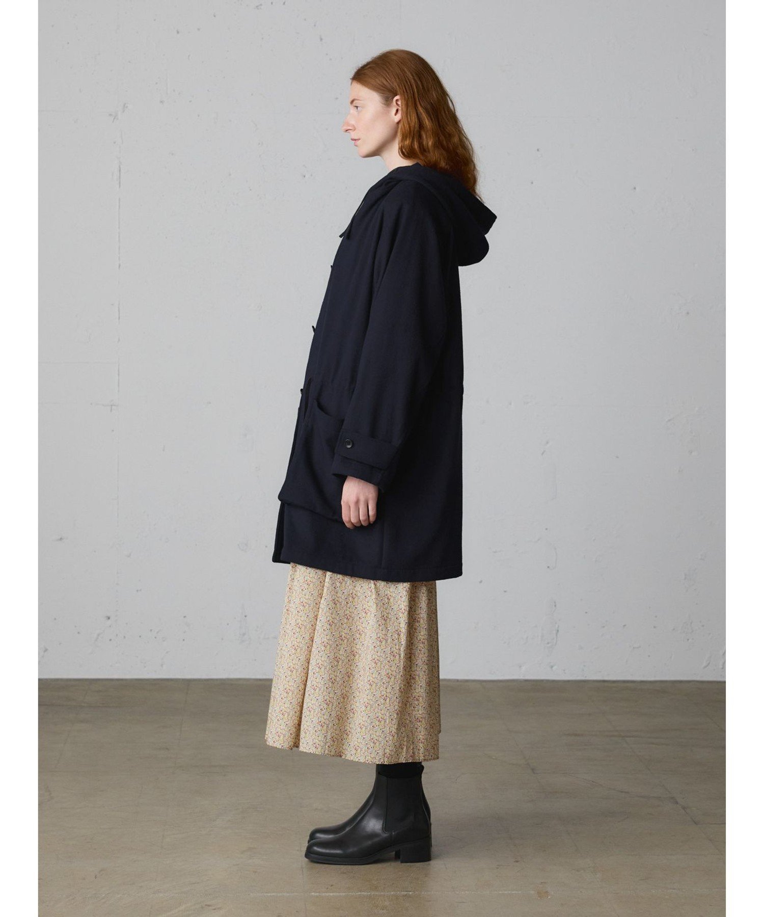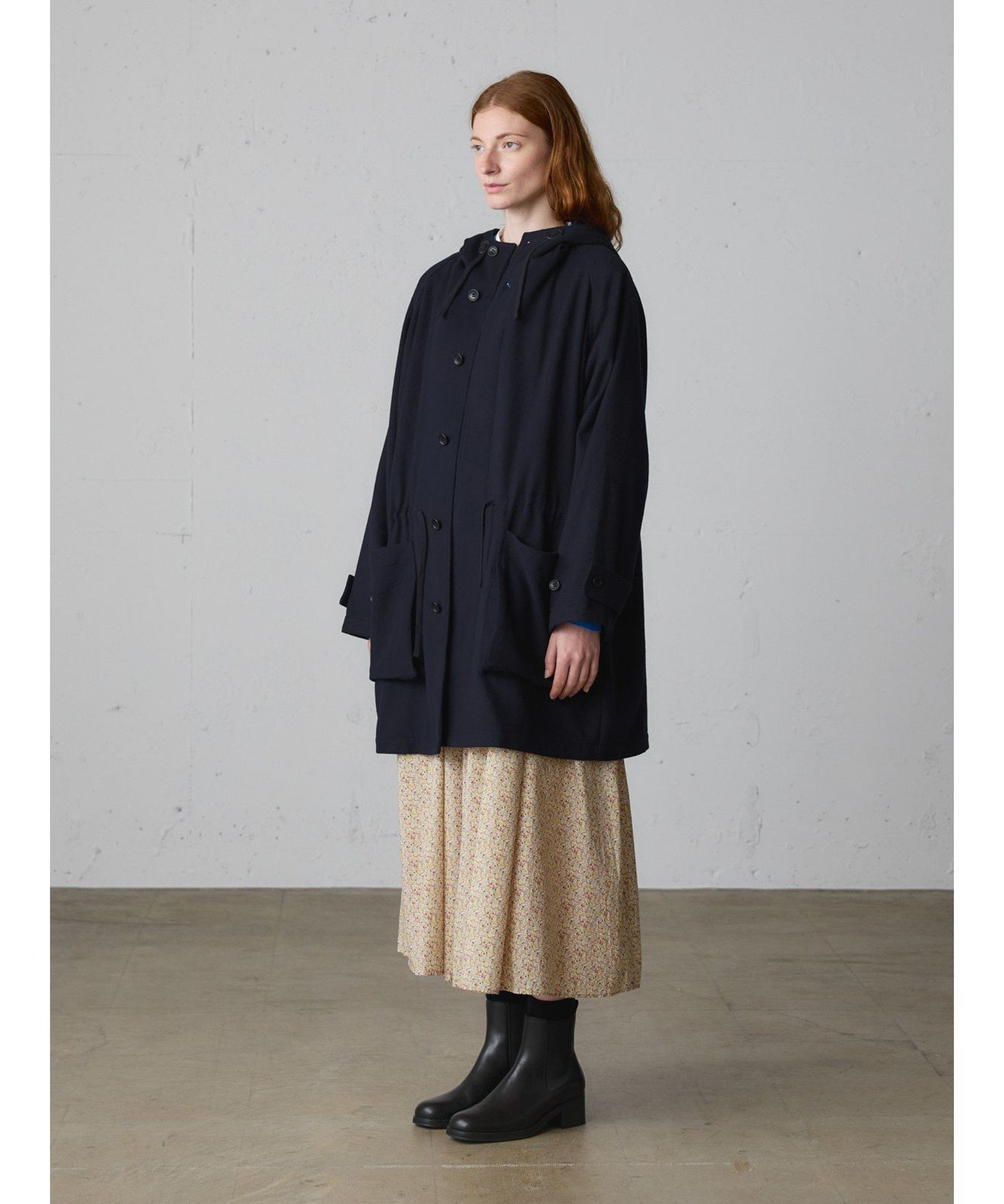 Это шерстяное пальто с капюшоном изготовлено из тонкой фланели из шерсти и полиэстера. Это легкое пальто, сшитое из цельного куска ткани. Рабочий стиль пальто в стиле модерн заменен фланелью для более изысканного вида. Оно имеет большие карманы и небольшой капюшон. Длина и размер позволяют легко носить его даже невысоким людям. Оно сочетается с широким спектром стилей, от повседневного до традиционного. Доступно в базовых цветах — темно-синем и сером, оба варианта пальто рассчитаны на длительное ношение. Также в этой же серии доступен: 3-779945/Пальто-дафлкот.