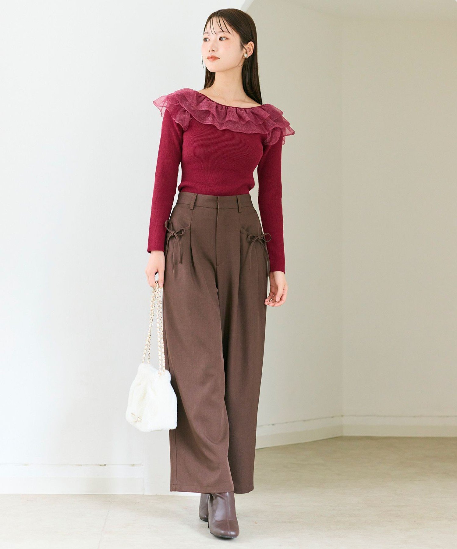 Изысканный, женственный вязаный топ с привлекательными крупными оборками, которые красиво обрамляют лицо. Тюльевые оборки вокруг воротника мягко колышутся, добавляя гламура лицу. Умеренно компактный силуэт придает верхней части тела аккуратный вид, позволяя изысканно подчеркнуть нежность оборок. Это универсальная вещь, которую можно носить как с юбками, так и с брюками, но при этом она достаточно гламурна, чтобы быть в центре внимания и сама по себе.