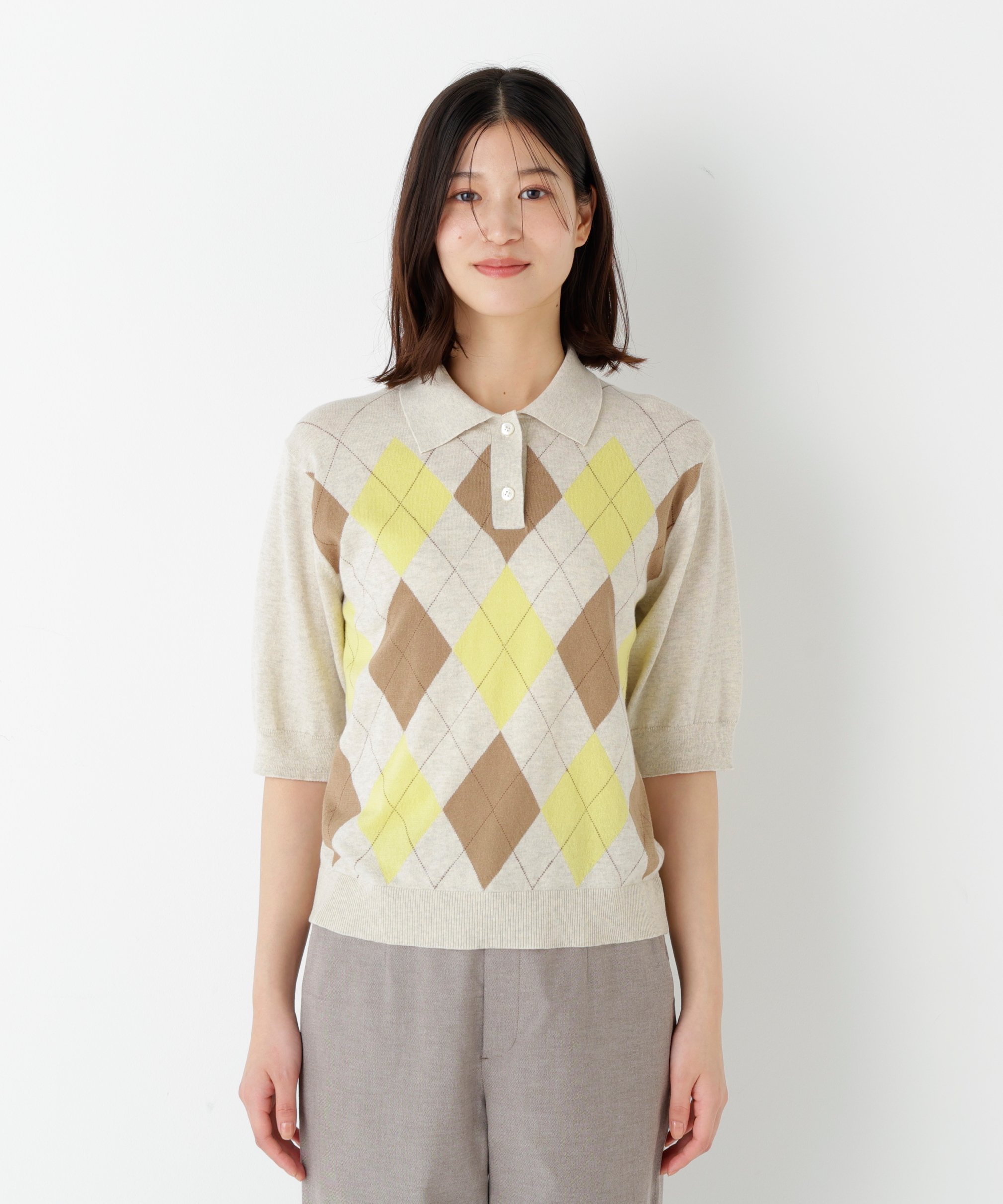 Насладитесь модным образом этого года с этим поло-рубашом с ромбовидным узором