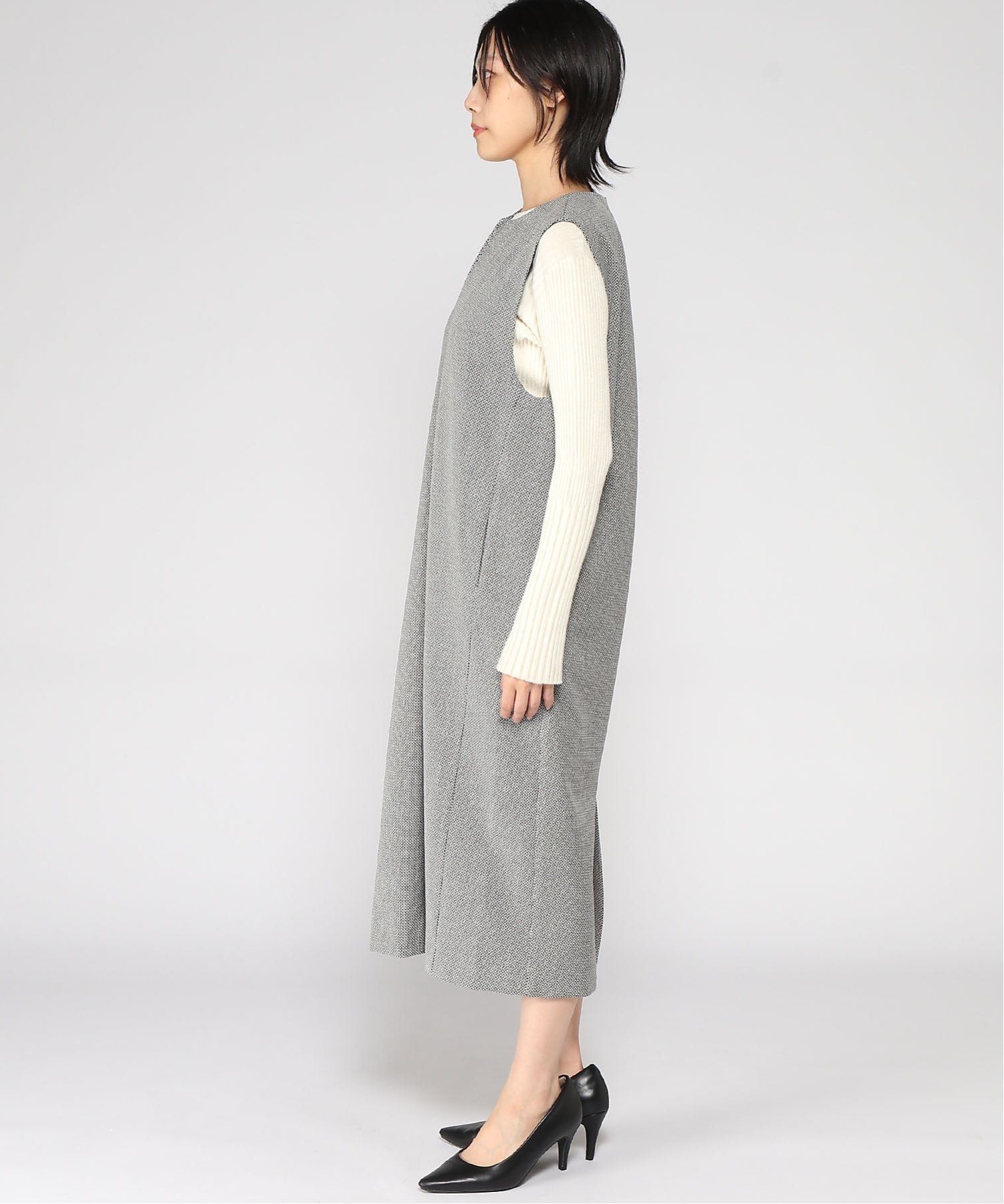 Эта юбка-свитер имеет вырез-«замочную скважину», что придает ей свободный силуэт и создает аккуратный образ.