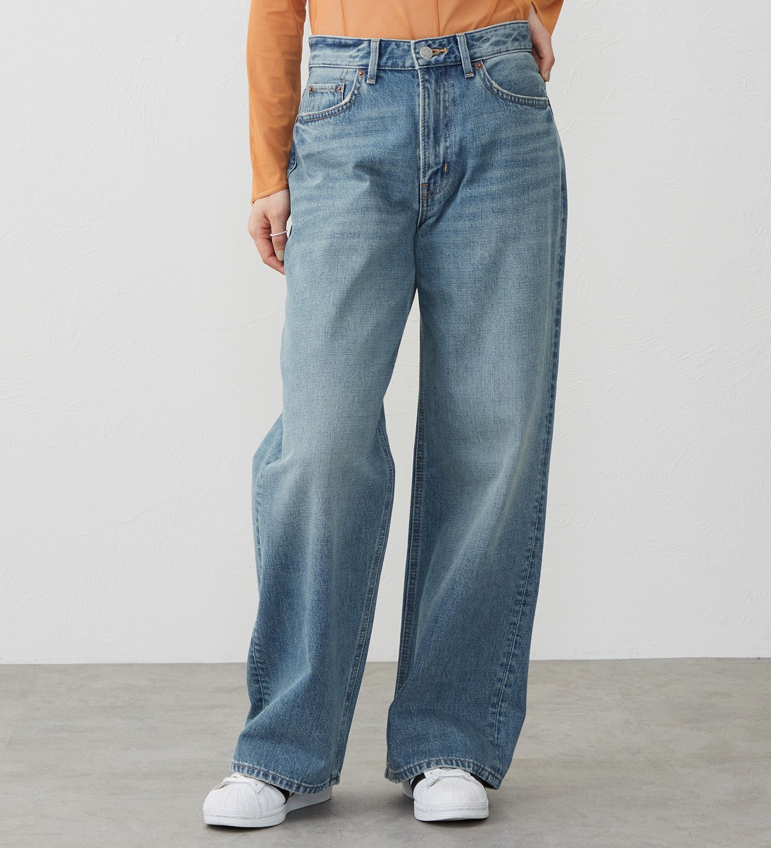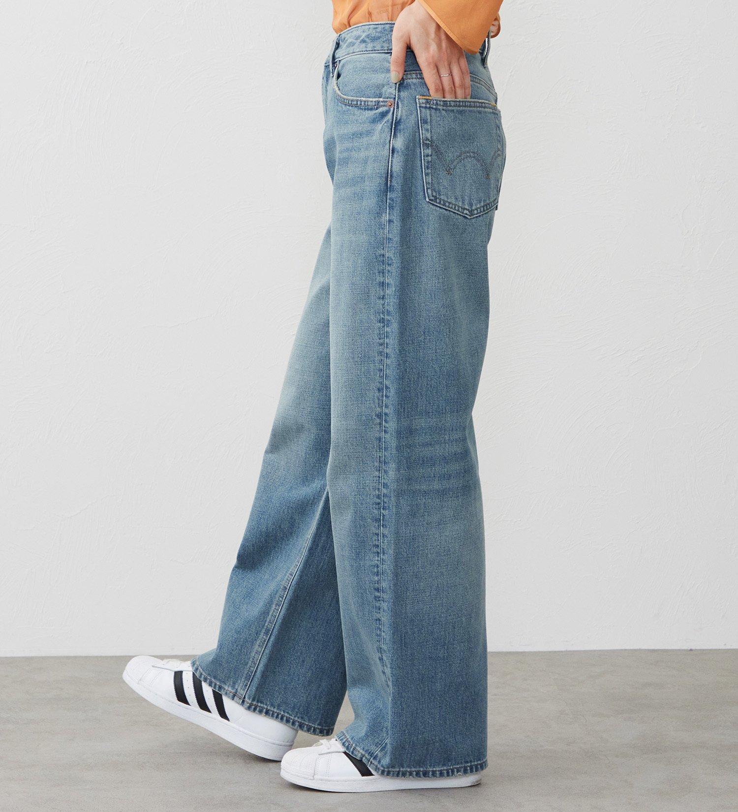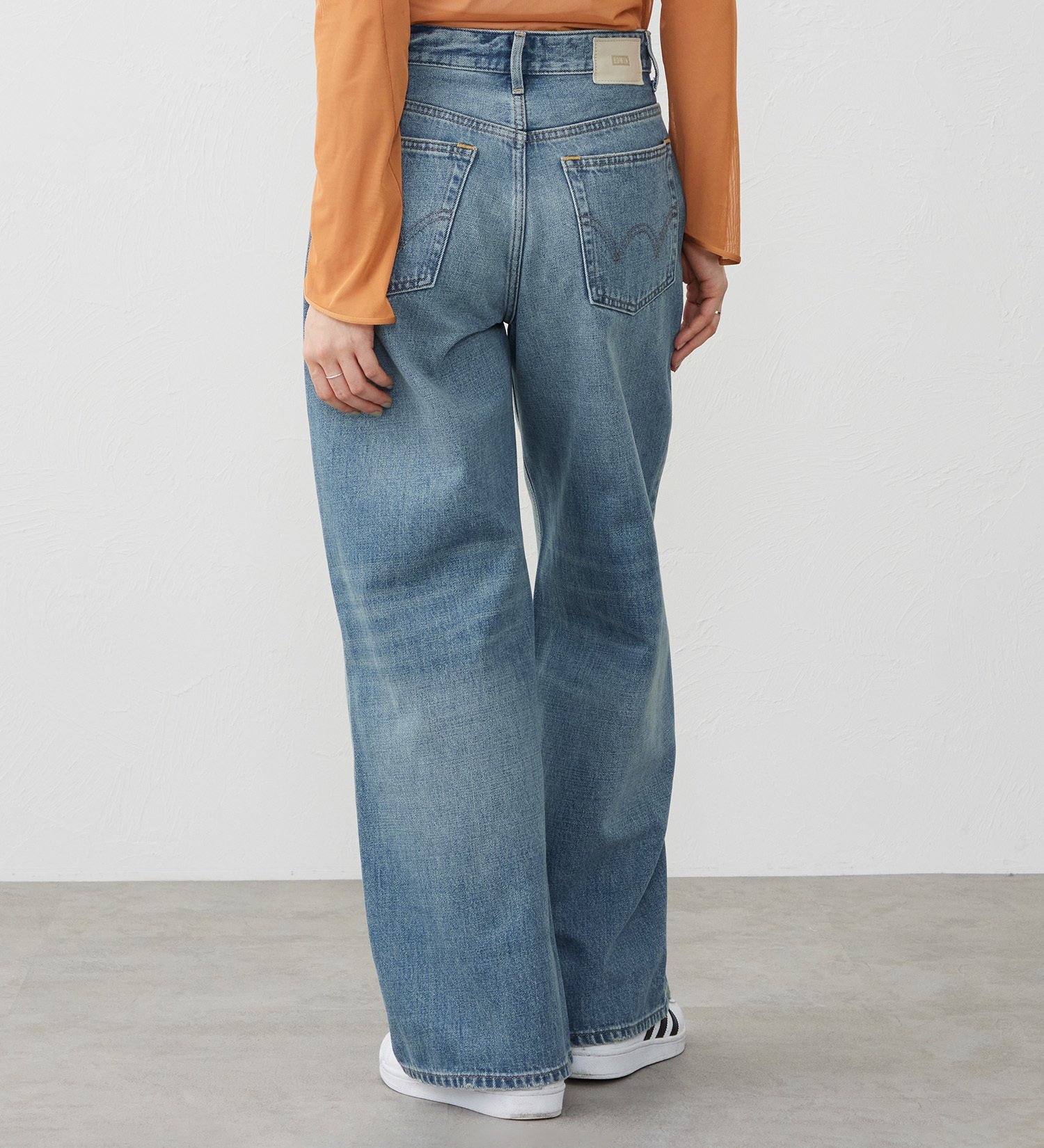 Аутентичные джинсы в винтажном стиле. Материал: Изготовлены из 100% хлопкового денима с неравномерной коротковолокнистой основой и утком, что создает уникальную, выразительную, трехмерную текстуру. Деним плотностью 13 унций отличается плотной структурой и оптимальной жесткостью, создавая винтажный, аутентичный вид. Дизайн: Эти широкие джинсы имеют свободный силуэт с достаточным пространством от бедер до бедер. Прямой пояс на талии создает объемный силуэт для женщин, предпочитающих сдержанный, мальчишеский стиль. Широкий силуэт не подчеркивает линии ног, что делает их удобными для любого типа фигуры. Сочетание: Для ранней весны мы рекомендуем сочетать их с джинсовой курткой свободного кроя из того же материала. Свободный силуэт создает сбалансированный и гармоничный образ. Сочетайте их с сандалиями на плоской подошве или лоферами для создания зрелого, мужественного образа.