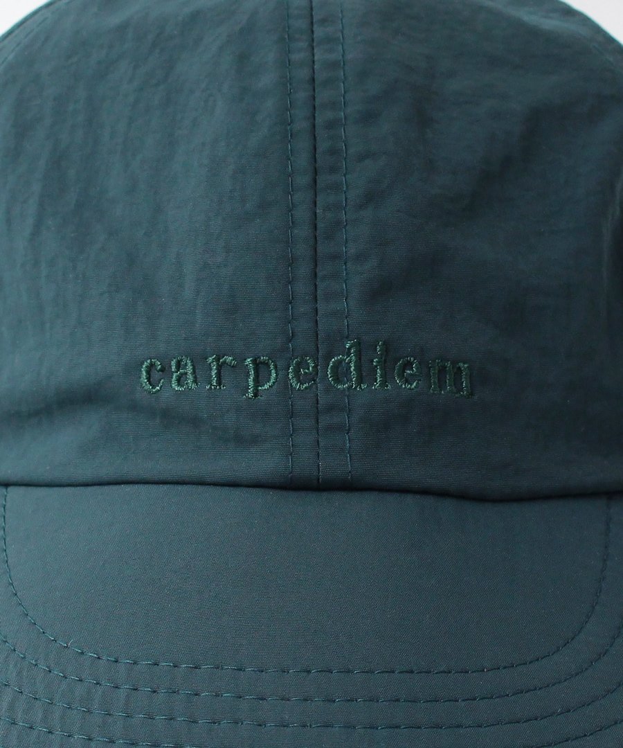 Нейлоновая кепка с вышитой надписью "carpediem" того же цвета, что и сама кепка.
