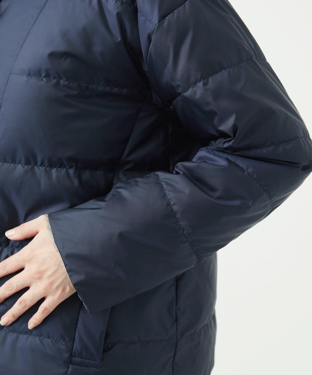 Изготовленное из мягкой и эластичной 100% полиэстеровой тафты, это двустороннее пуховое пальто имеет контрастные цвета и может носиться с обеих сторон. Тонкость материала и ограниченное количество пуха делают это пуховое пальто чрезвычайно легким, но при этом теплым.
