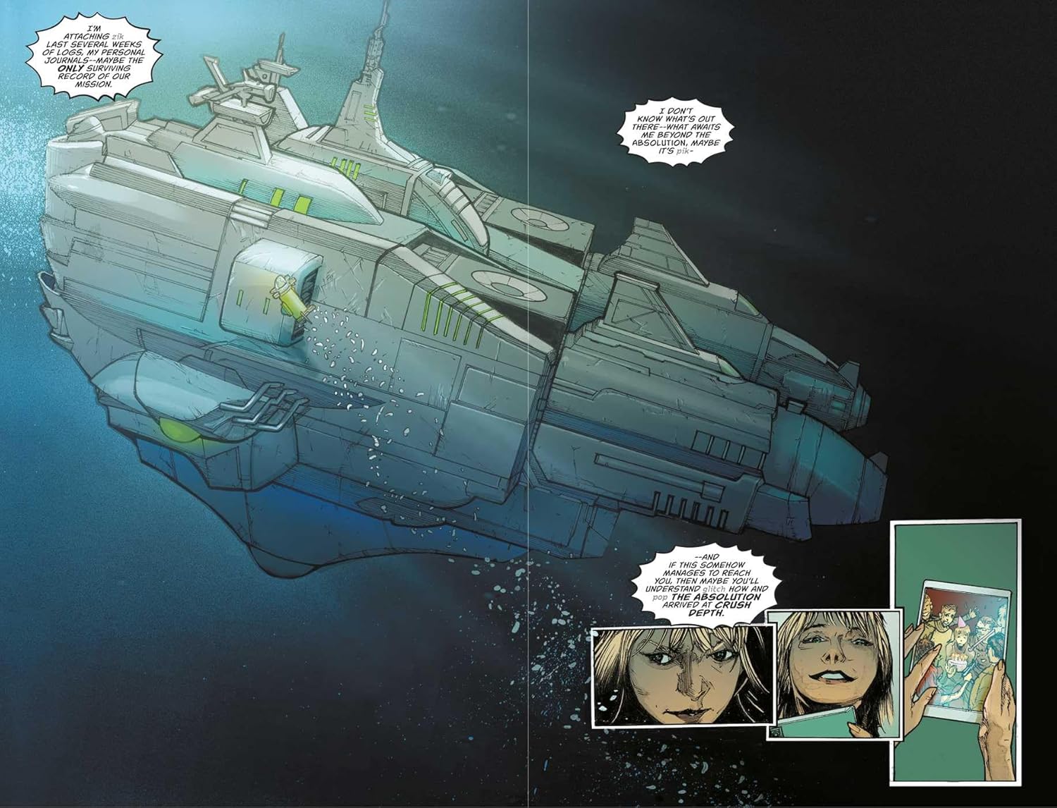Два брата, враждующие между собой, борются за командование огромной атомной подводной лодкой «Абсолюция» в недалеком будущем, необратимо измененном изменением климата. Главный научный сотрудник Лиана Пирсон оказывается не только между братьями Уайлдер, но и тонет в своем страхе перед наземным миром. Когда нечто инопланетное проникает на «Абсолюцию» и нарушает баланс сил, у Лианы остаются только два смертельно опасных варианта: добраться до токсичного наземного мира или направить подводную лодку в безжалостную бездну и сокрушить ее глубину - «Вдохни глубоко!»