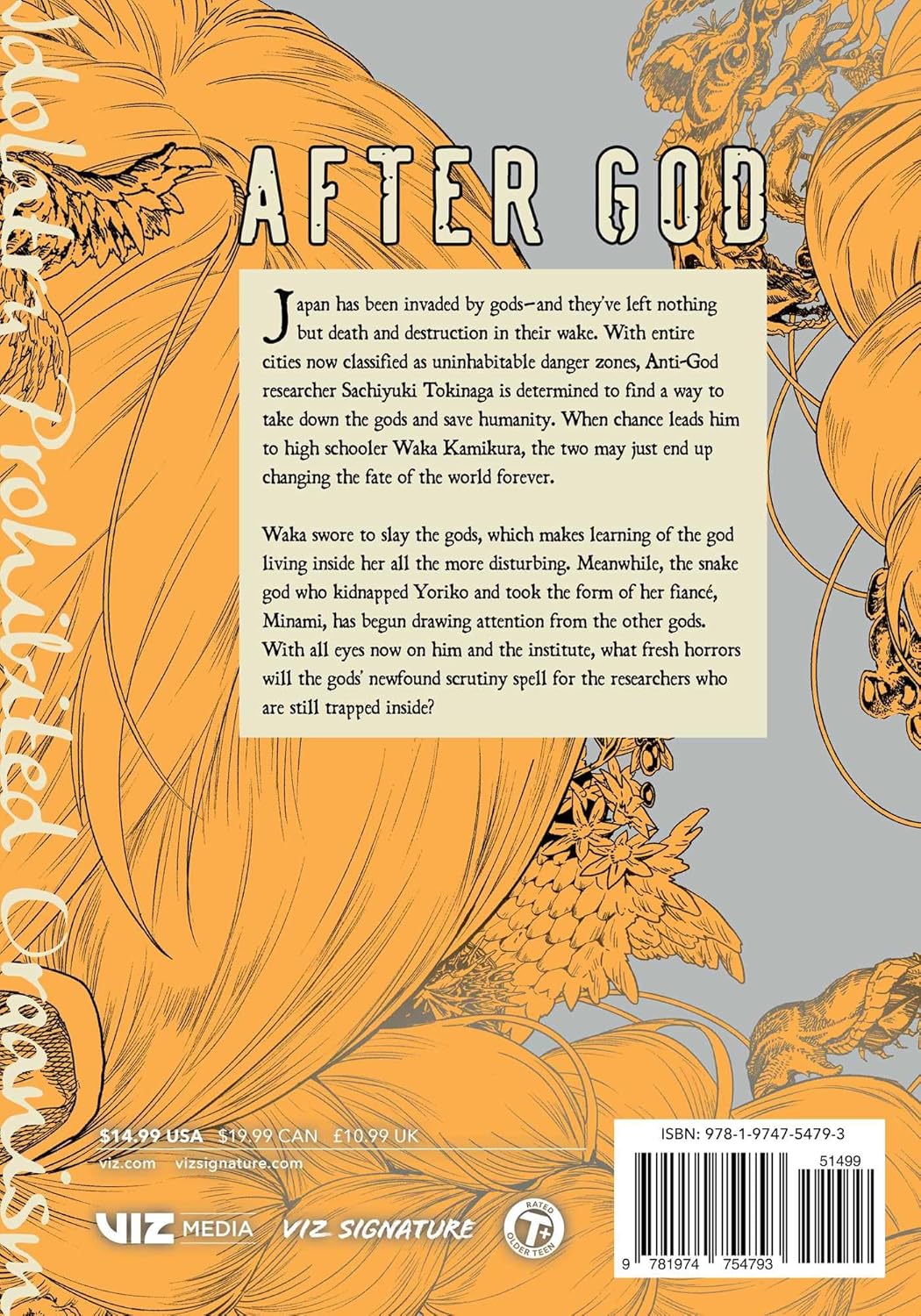 Вака поклялась убить богов, и это делает известие о боге, живущем внутри нее, еще более тревожным. Тем временем, бог-змей, похитивший Ерико и принявший облик ее жениха, Минами, начал привлекать внимание других богов. Теперь, когда все взгляды прикованы к нему и институту, какие новые ужасы принесет это пристальное внимание богов исследователям-людям?