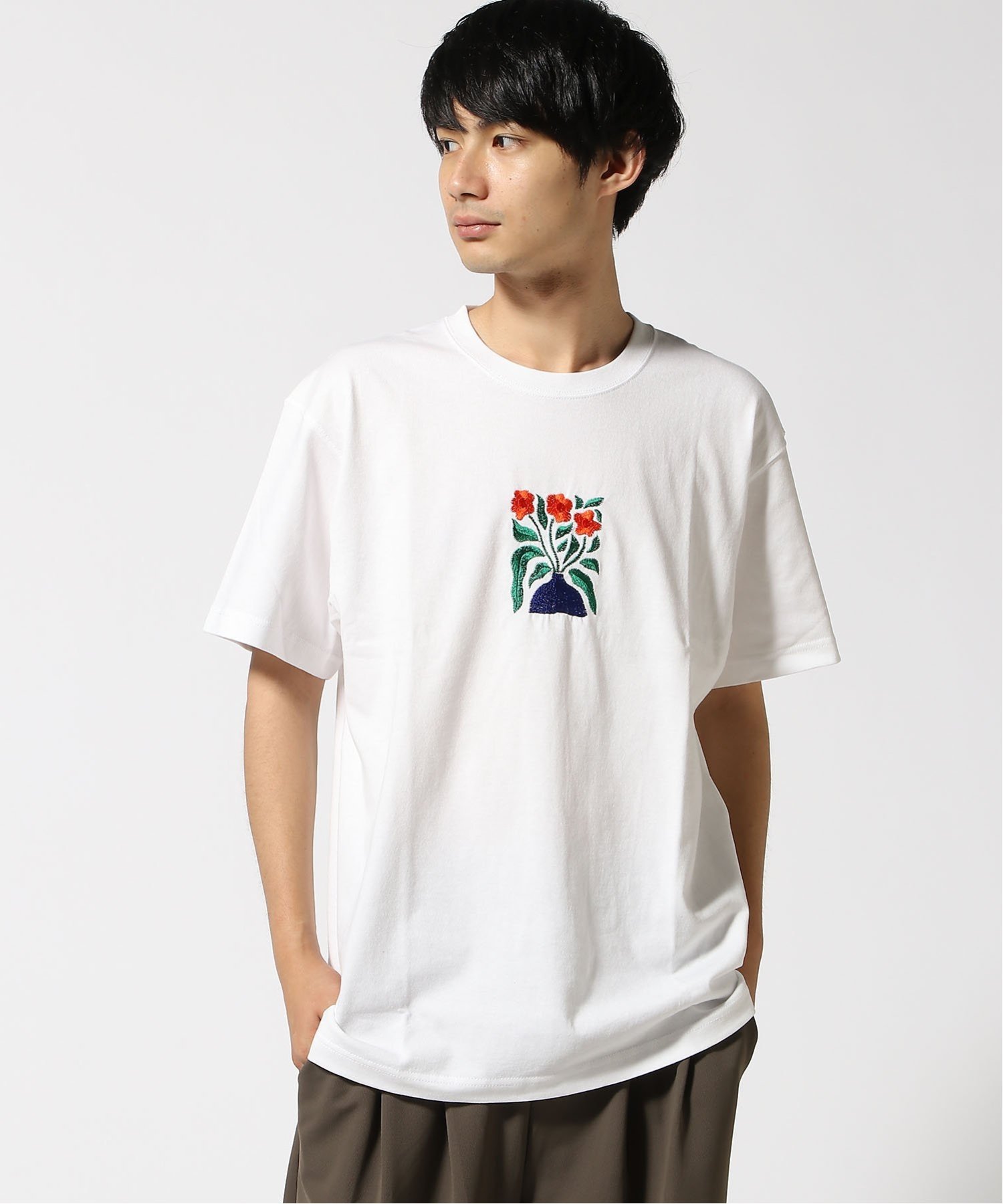 Футболка с коротким рукавом в базовых цветах, с ретро-цветочным мотивом и вышитым логотипом, станет ярким акцентом вашего образа.