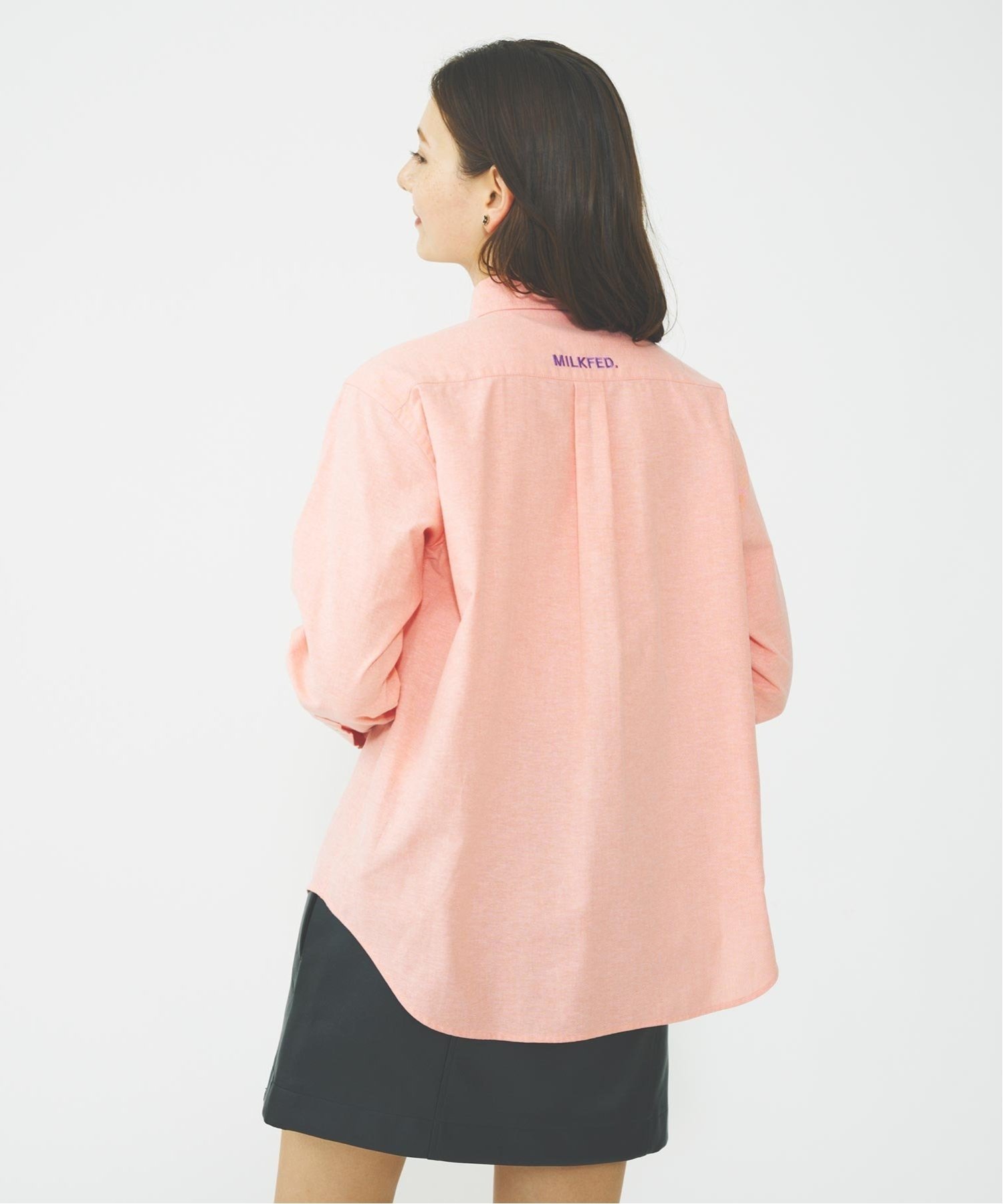 Хотя на первый взгляд она выглядит как простая рубашка, вышивка логотипа MILKFED. на спине добавляет изюминку○