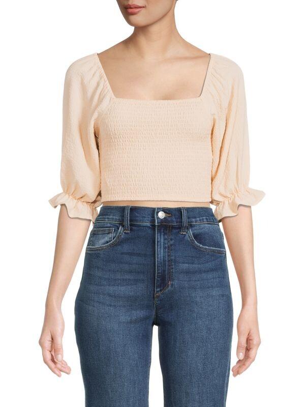 Укороченный топ BCBGeneration — это наслаждение для теплой погоды со сборками и рюшами. Носите свою с юбками с принтом в пастельных тонах.Квадратный вырез.Короткие рукава-фонарики.Пуловеры.Присборенные брюки. Полиэстер/спандекс.Машинная стирка.Импорт.