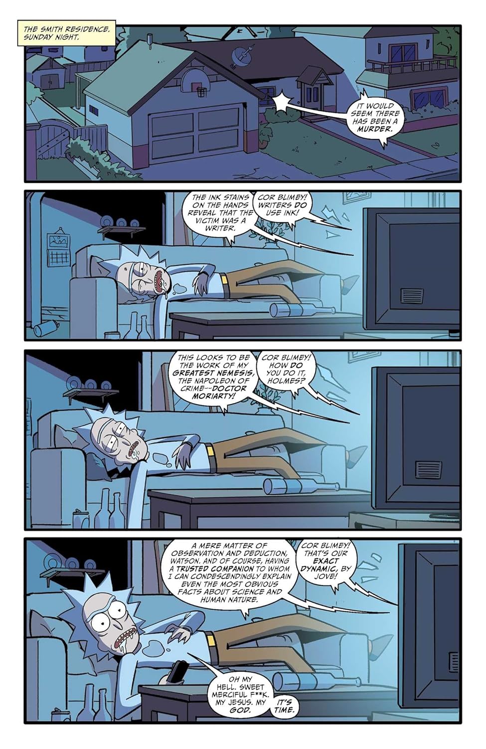 В сборник вошли все пять уморительных выпусков «Рика и Морти: Финальная неделя» - SheRick Holmes & Mortson #1, BrawlHer #1, Wrath of Beth #1, Contested Convention #1 и Old Man Morty #1!