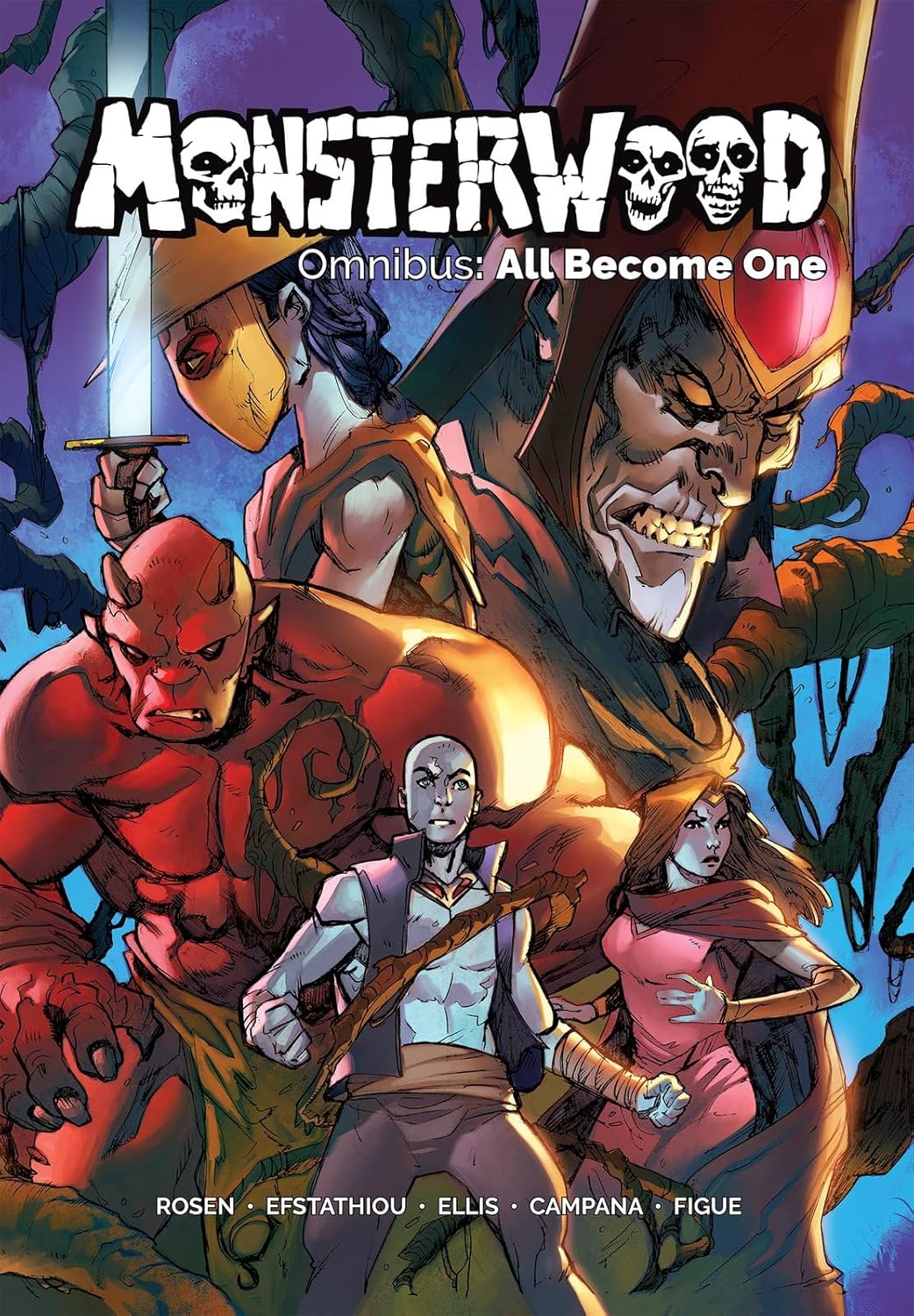 Крис Кампана работал в издательствах Marvel, Hasbro, IDW, Dynamite и Image Comics над такими сериями, как Ghost Rider, Red Goblin, Spider Boy, Gi-Joe, Deadpool, DeathDealer, TMNT, Red Sonja, Lady Death, Vampirella, Pathfinder, Tellos и Blind Justice. Крис также является многократно номинированным на премию Ringo автором и художником за свою работу над популярным инди-комиксом The Adventures of Parker Reef. Стив Эллис, иллюстратор, занимается фэнтезийной графикой и созданием комиксов последние 25 лет. После работы иллюстратором для таких клиентов, как Marvel Comics (Железный Человек, Люди Икс, Даркстар и Зимняя Гвардия), DC Comics (Зеленый Фонарь, Лобо) и Wizards of the Coast (MAGIC THE GATHERING, DUNGEONS AND DRAGONS), а также Blizzard (WORLD OF WARCRAFT), он стал соавтором отмеченных наградами серий графических романов «Единственный живой мальчик», «Единственная живая девочка» и «Высокая Луна». Иллюстрирование и создание историй в Monsterwood стало для Стива захватывающей возможностью сочетать свои комиксные работы с фэнтезийным стилем. Он с удовольствием исследует пышный, жуткий, темный мир и эпические сюжетные линии леса Monsterwood. Ник Эфстатиу - муж, отец и писатель, живущий в Нью-Гэмпшире. В настоящее время он работает учителем истории в средней школе и увлекается коллекционированием книг и наборов LEGO. Под эгидой SKINWALKER STUDIOS Джейсон Розен разрабатывал дизайн, создавал скульптуры и/или спецэффекты для Уэса Крейвена, NBC/Universal, Chiller Channel, Университета Коннектикута, Международного кинофестиваля в Итаке, Бостонского андеграундного кинофестиваля, ведущего концепт-художника Пола Джеррарда, кинорежиссеров Уэса Крейвена, арт-директора Кальво, Даррена Линна Боусмана, Vincent Guastini Productions, Effects & Design и других.