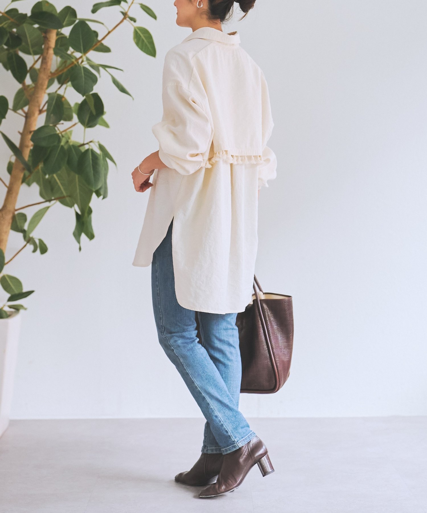 Длина закрывает талию, а закругленный низ с глубокими боковыми разрезами создает легкий и расслабленный силуэт.