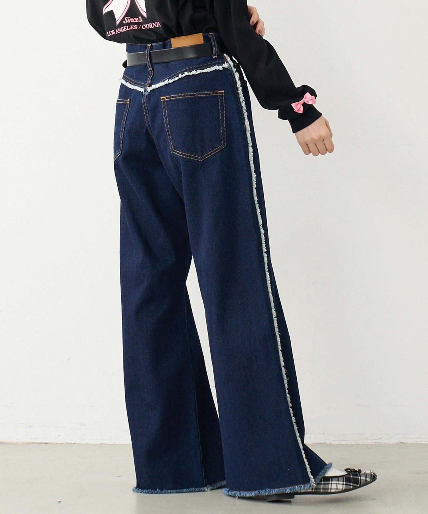 Высокая талия создает иллюзию более длинных ног, а бахрома по бокам делает линии ног красивыми при взгляде сбоку. 〇