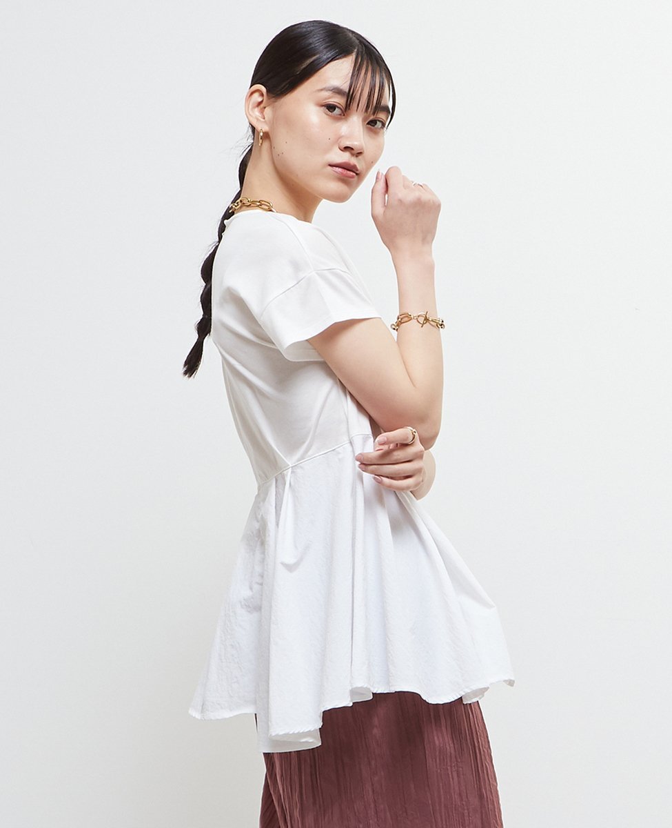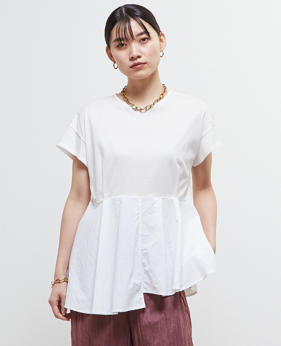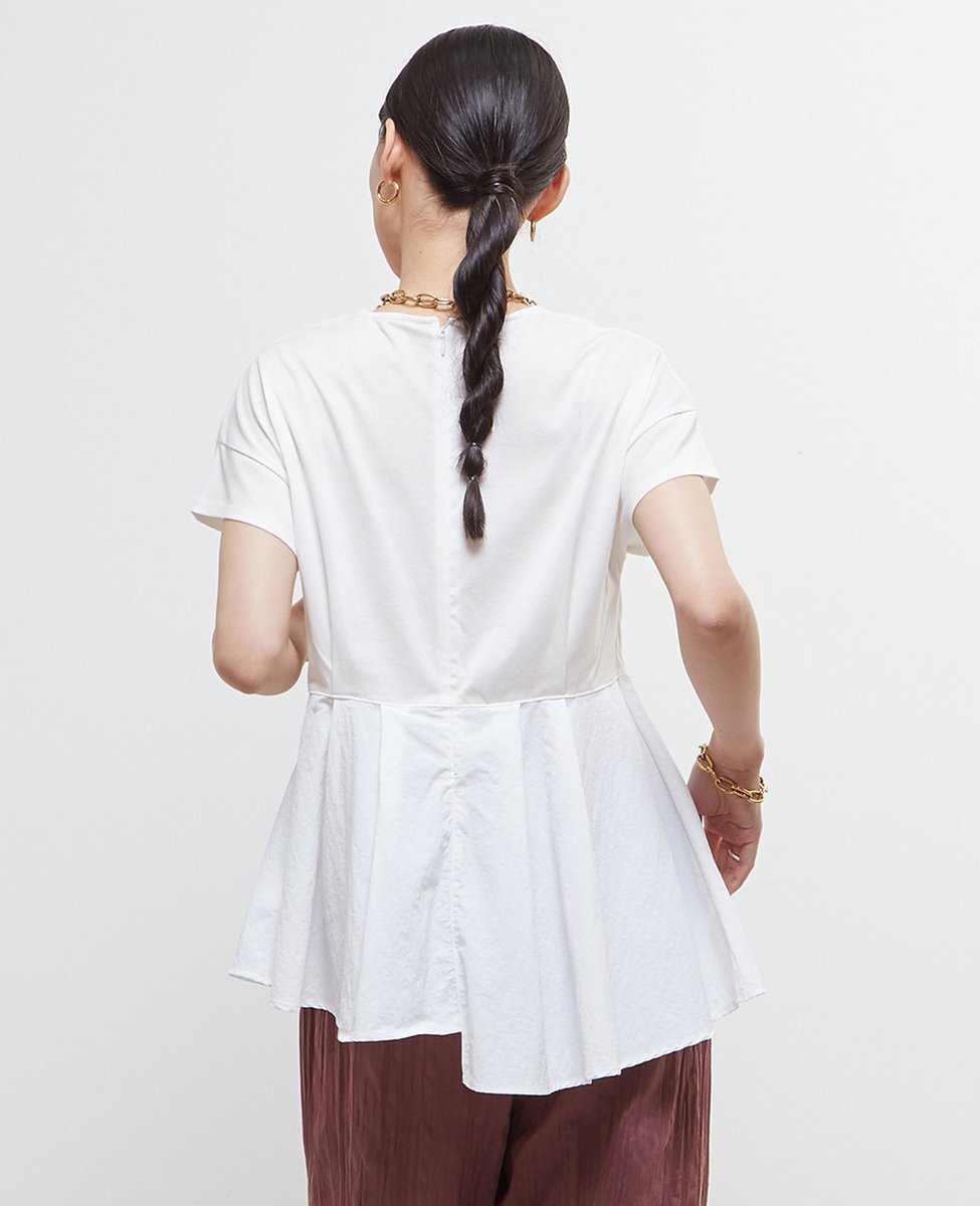 Дизайн-топ, сшитый из комбинации мерсеризованного трикотажа и таслана.