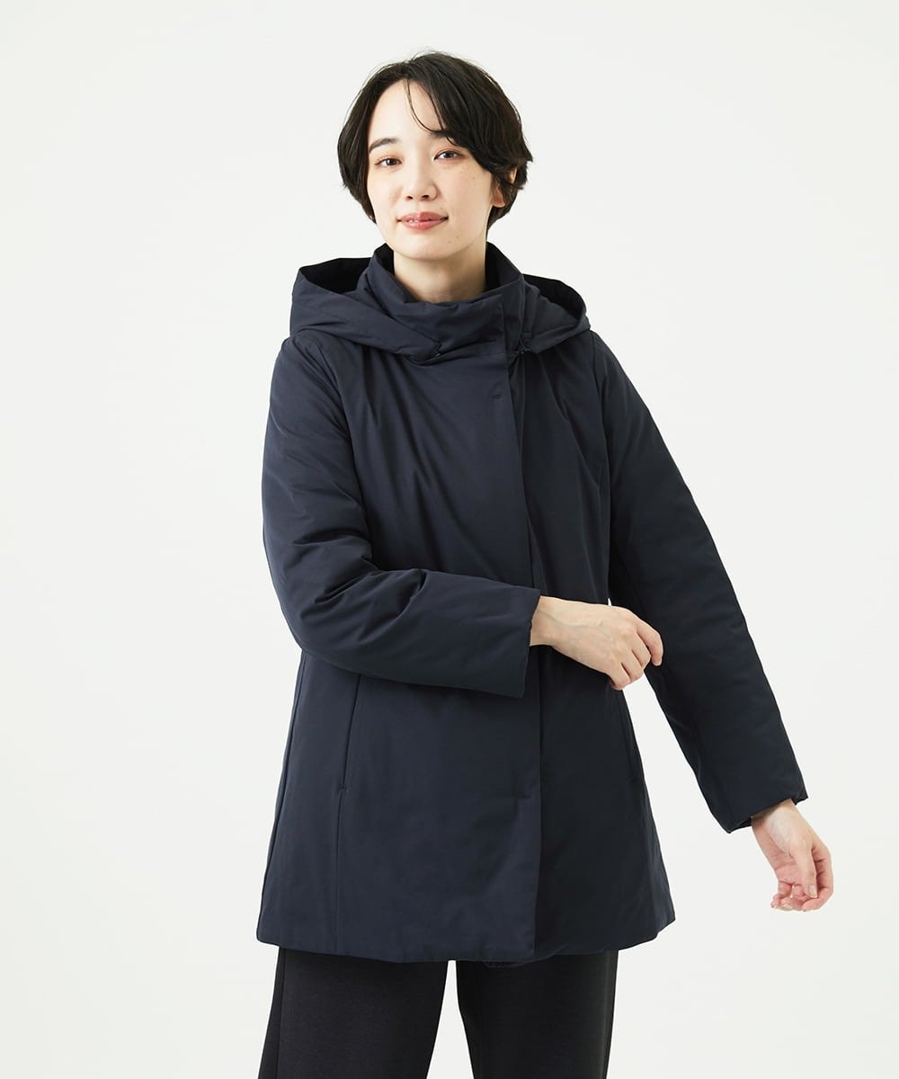 Эта пуховая куртка обеспечивает обтекаемый вид, не создавая ощущения громоздкости. Она имеет съемный капюшон и двухстороннюю конструкцию. Пуховые швы на внешней поверхности скрыты, создавая трехмерный силуэт для элегантного внешнего вида. Двухцветная подкладка украшена лентой на талии.