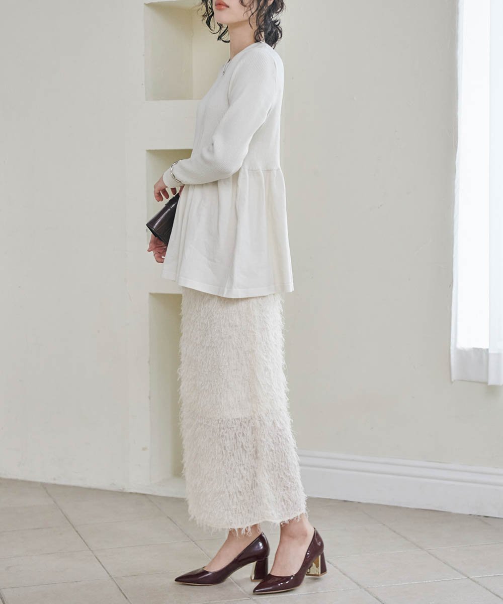 - Трикотажное платье с баской, мягкой расклешенной талией и подолом.