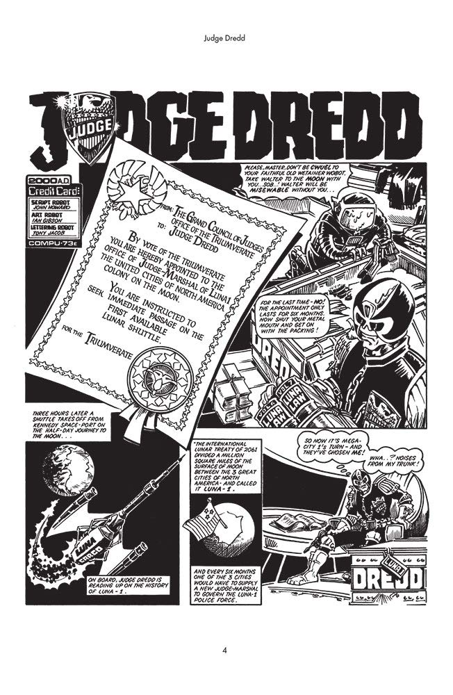 В 2061 году международный лунный договор разделил миллион квадратных миль лунной поверхности между Мега-Сити Один, Два и Техас-Сити. Каждые шесть месяцев один из этих городов должен был предоставлять судью-маршала для управления им… встречайте судью Дредда! В условиях, столь же опасных, как и на улицах «Большого Мегаполиса», судье-маршалу Дредду предстоит немало работы, особенно когда во время первых лунных Олимпийских игр разразится война! Эти ранние истории о Дредде, написанные Джоном Вагнером и дополненные великолепными иллюстрациями Брайана Болланда, Иэна Гибсона и Мика Макмахона, просто невероятны!
