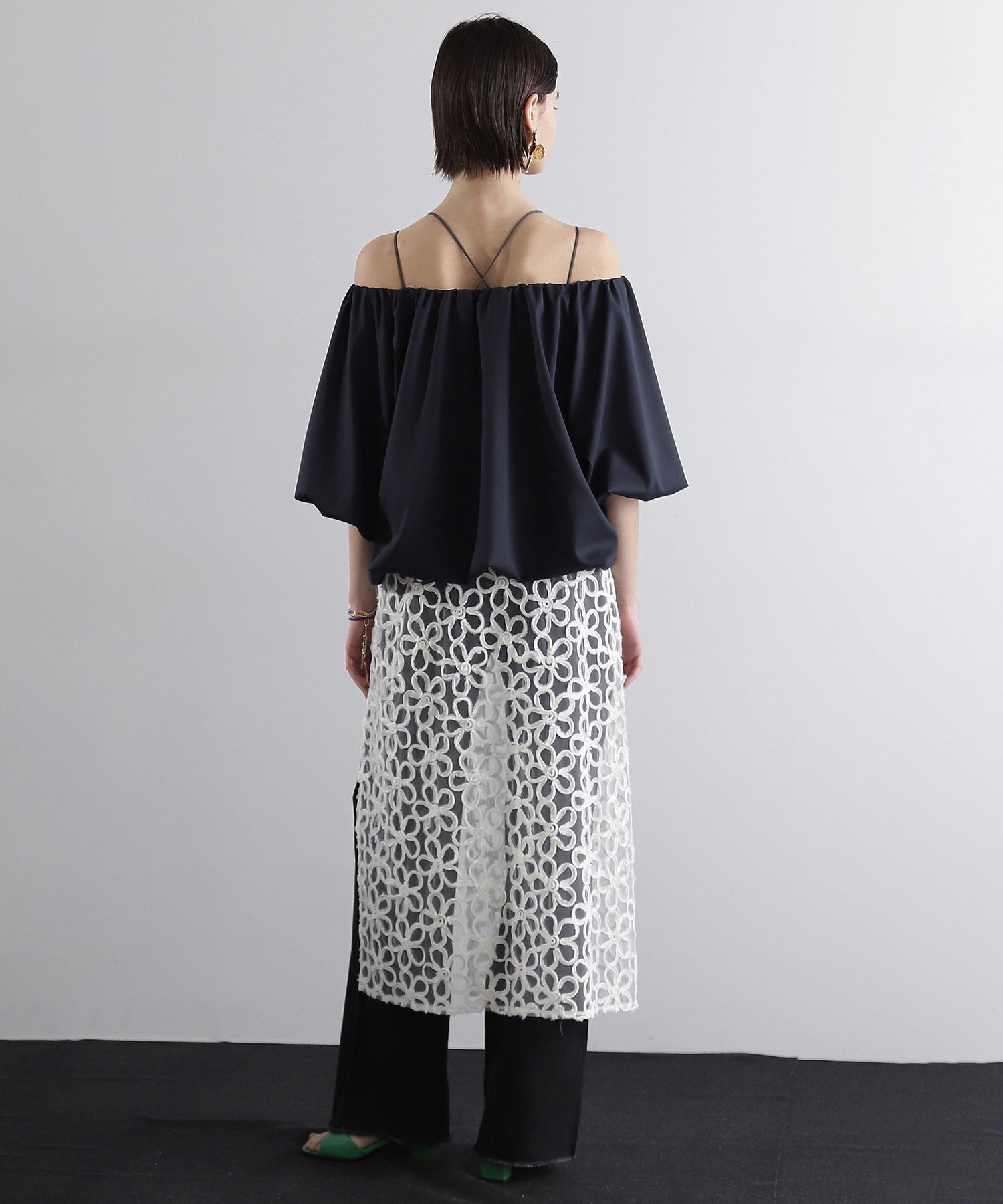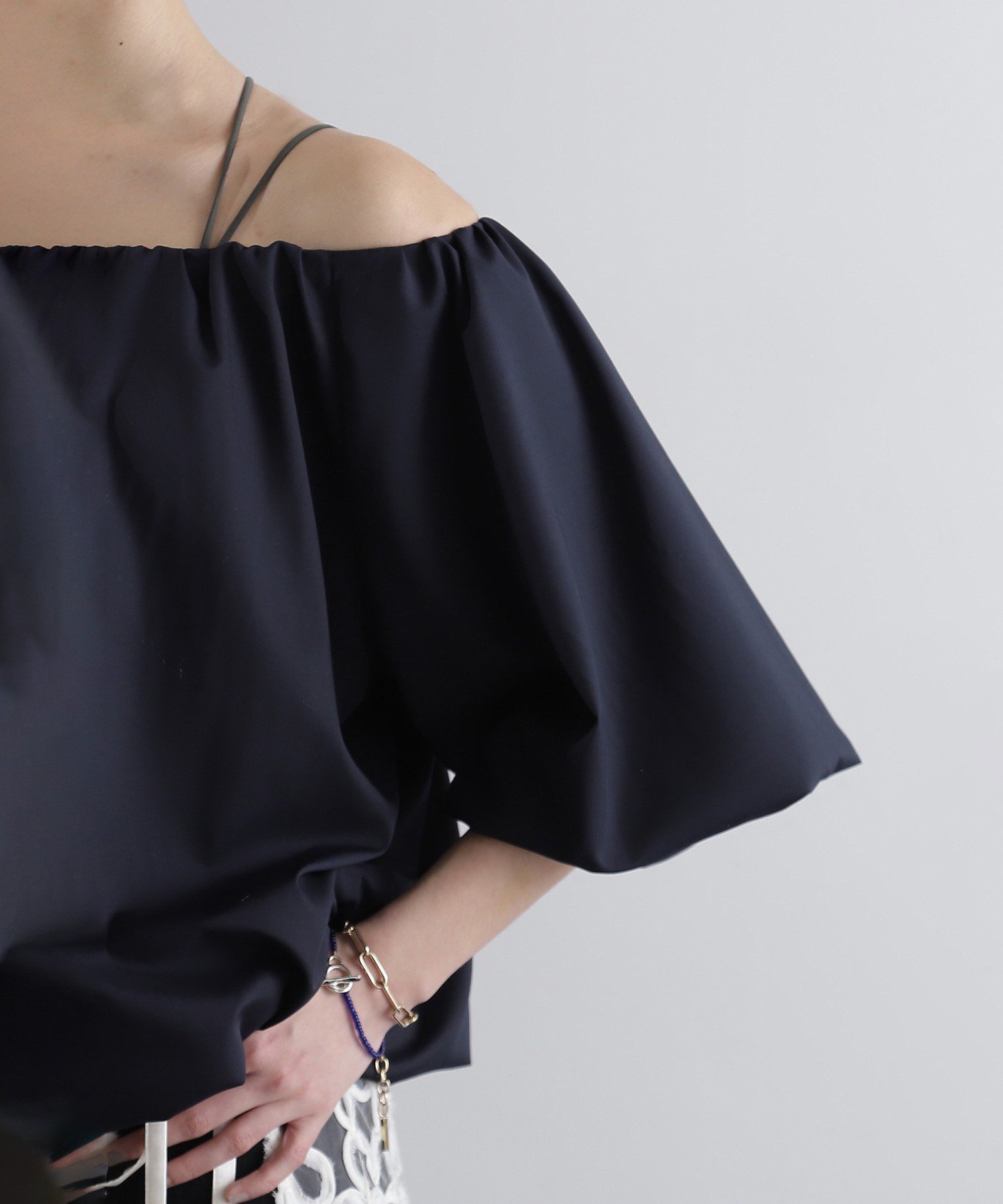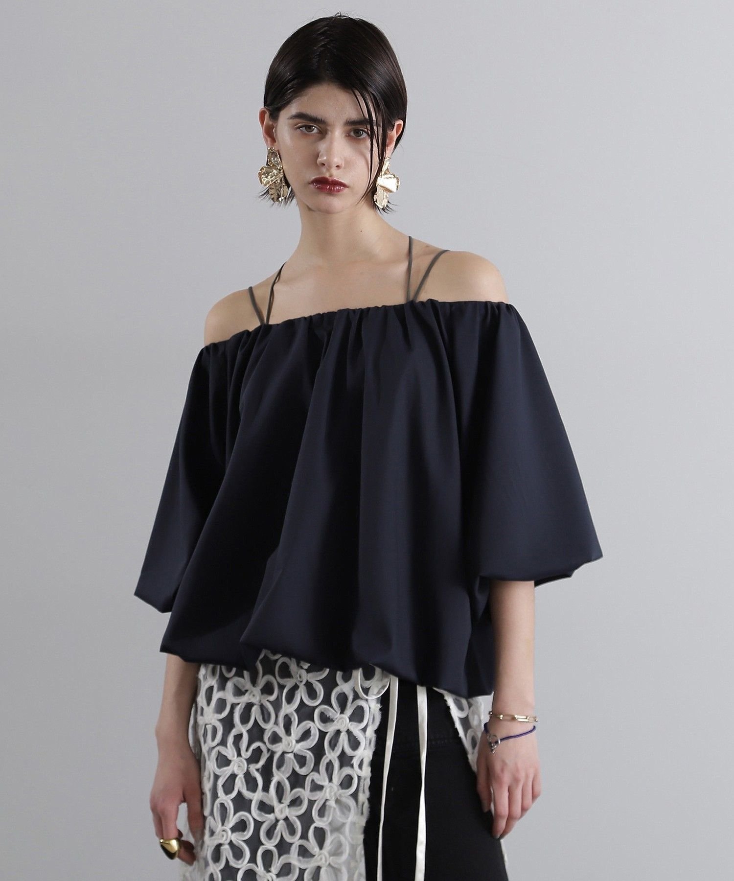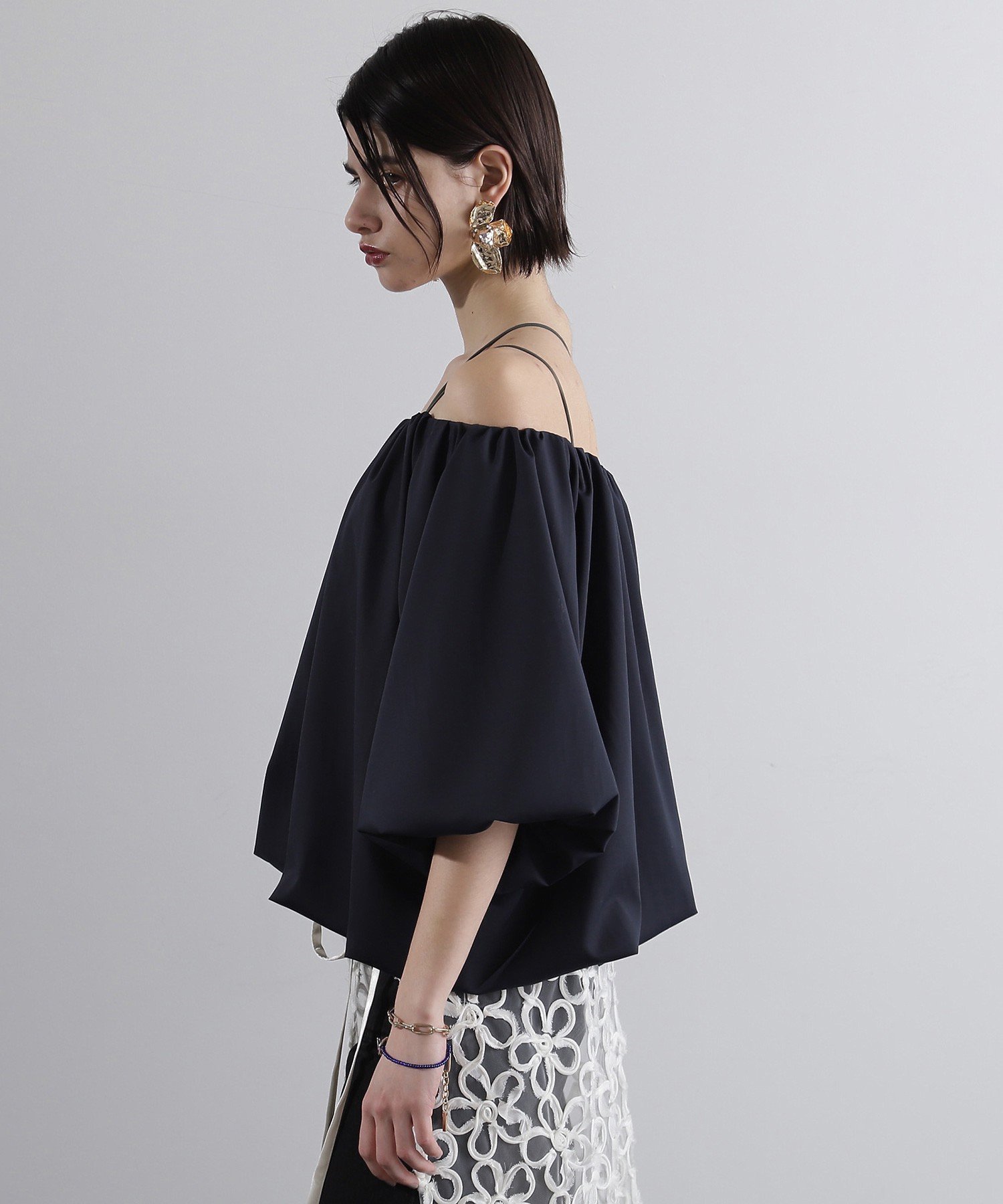 Блузка-баллон с вырезом, который можно подогнать по фигуре для создания модного образа.