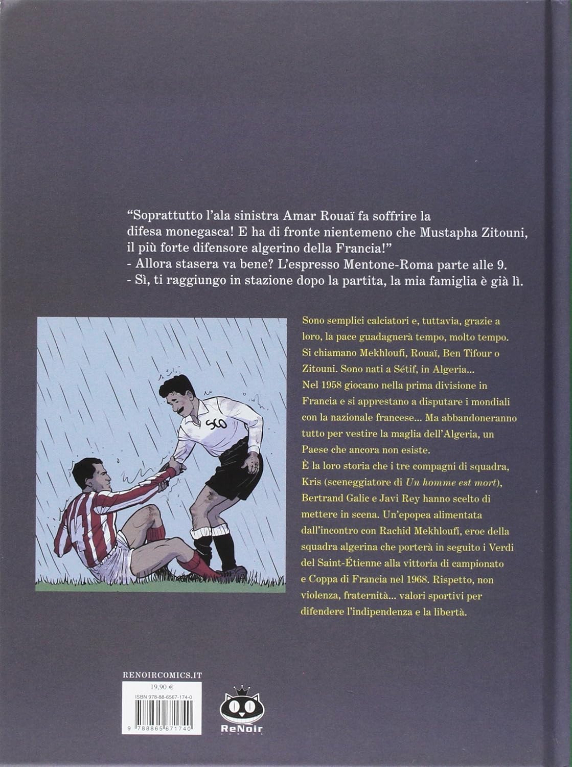 Sono samplici Calciatori e, tuttavia, grazie a loro, la pace guadagnerà tempo, molto tempo. Если вы звоните Мехлуфи, Руаи, Бен Тифуру или Зитуни. Соно-нати-а-Сетиф, в Алжире. В 1958 году игра в первом дивизионе во Франции была одобрена в споре в мире с националом Франции. Я покинул все это для того, чтобы надеть магию в Алжире, ип-паезе, которое не существует. È la Loro Storia che i Tre Compagni di Squadra, Крис (сценарист «Человек est mort»), Бертран Галич и Хави Рей выбирали места на сцене. Un'epopea alimentala dall'incontro con Rachid Mekhloufi, герой сборной Алжира, который принес в следующем году и Верди дель Сент-Этьен алла победителя чемпионата и Кубка Франции в 1968 году. свобода.