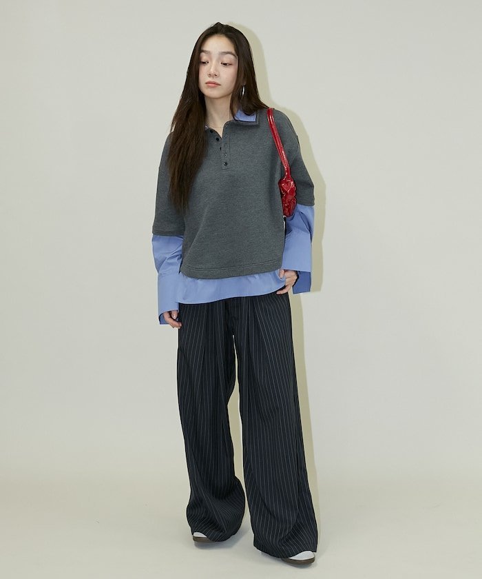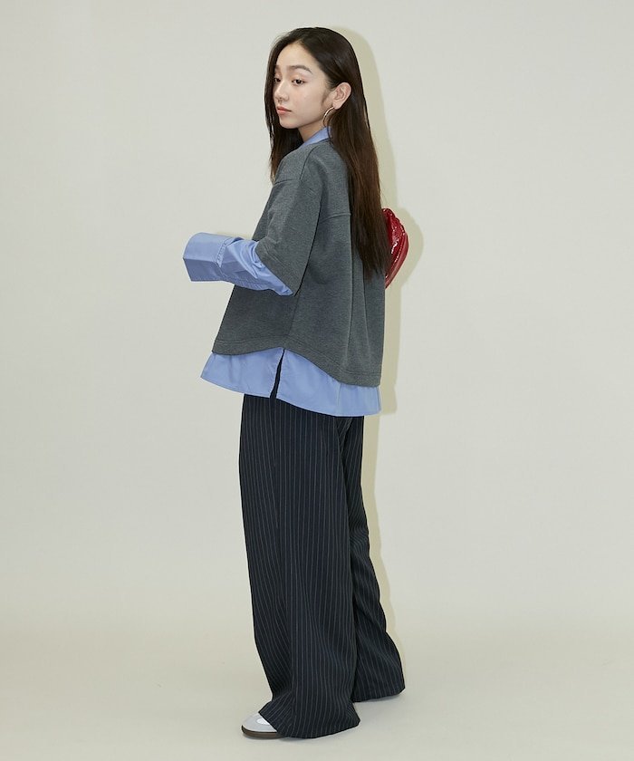 ●Многослойный дизайн: ткань рубашки выглядывает из-под воротника, манжет и низа, создавая изысканный многослойный образ.