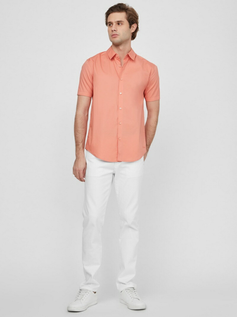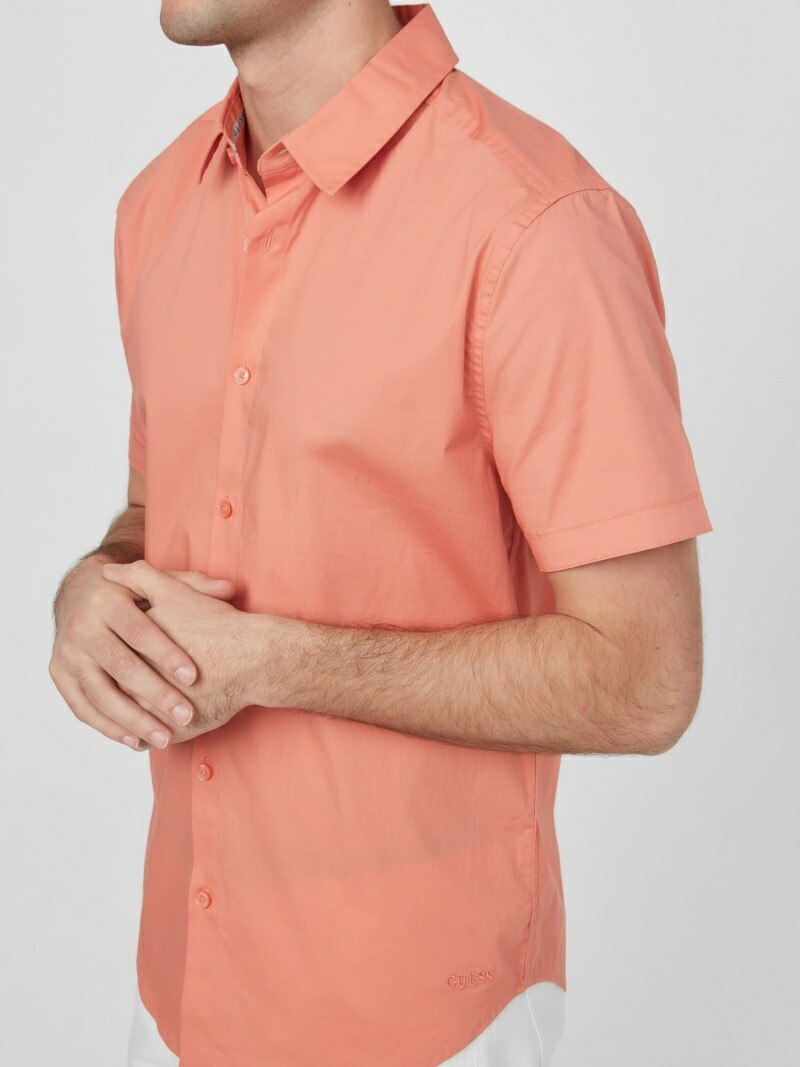 Рубашка с коротким рукавом, простой и легко сочетающаяся с другой одеждой.