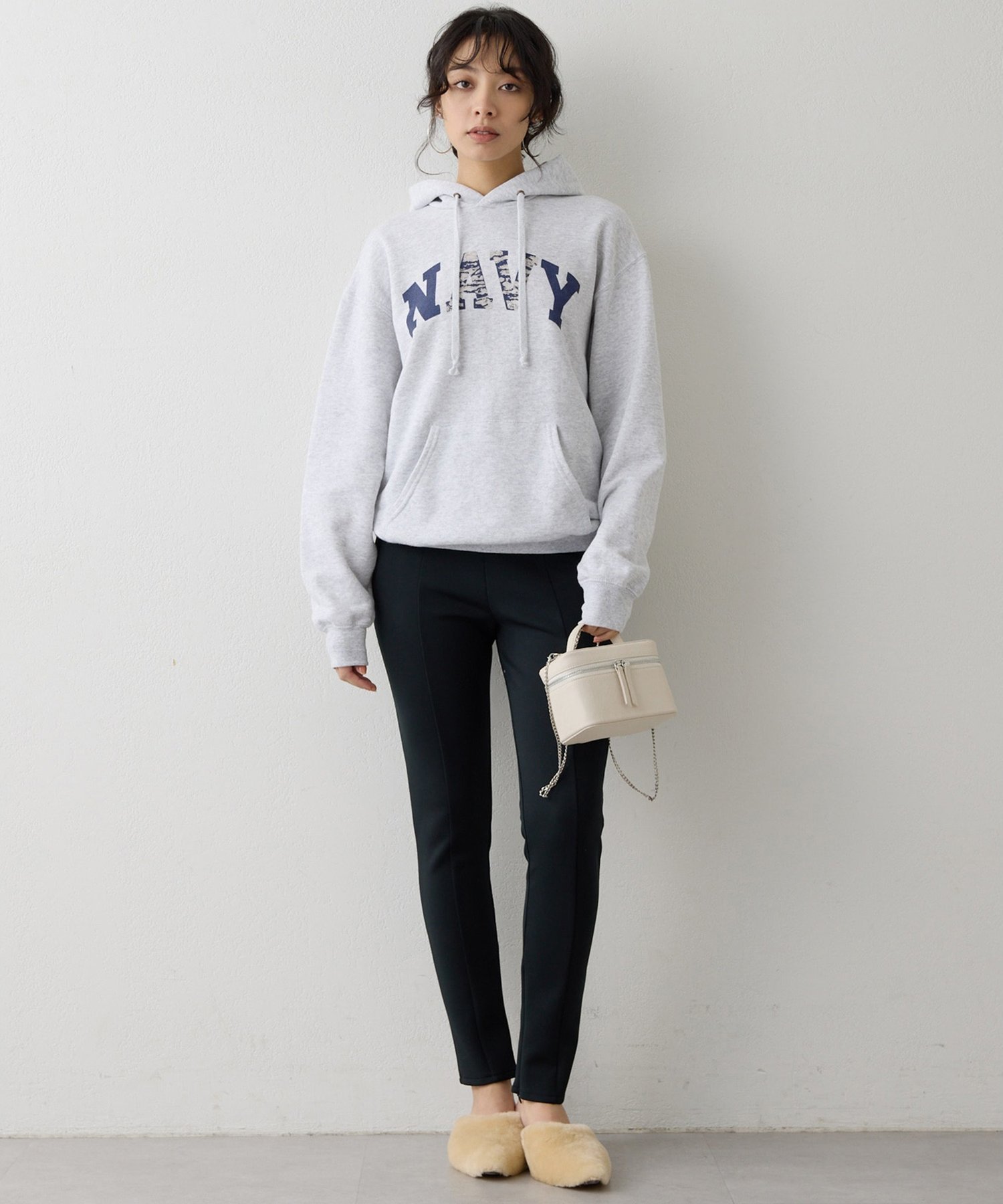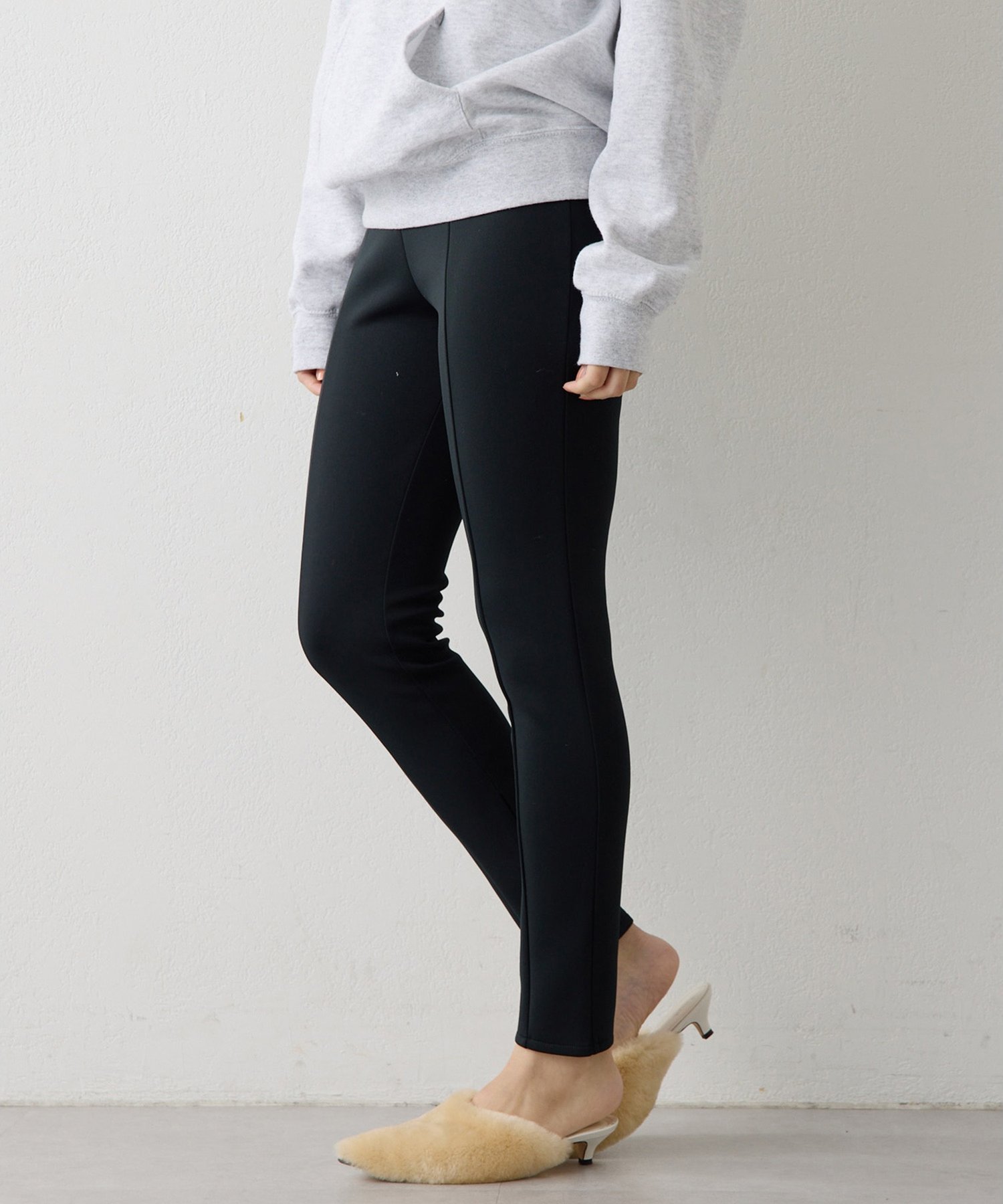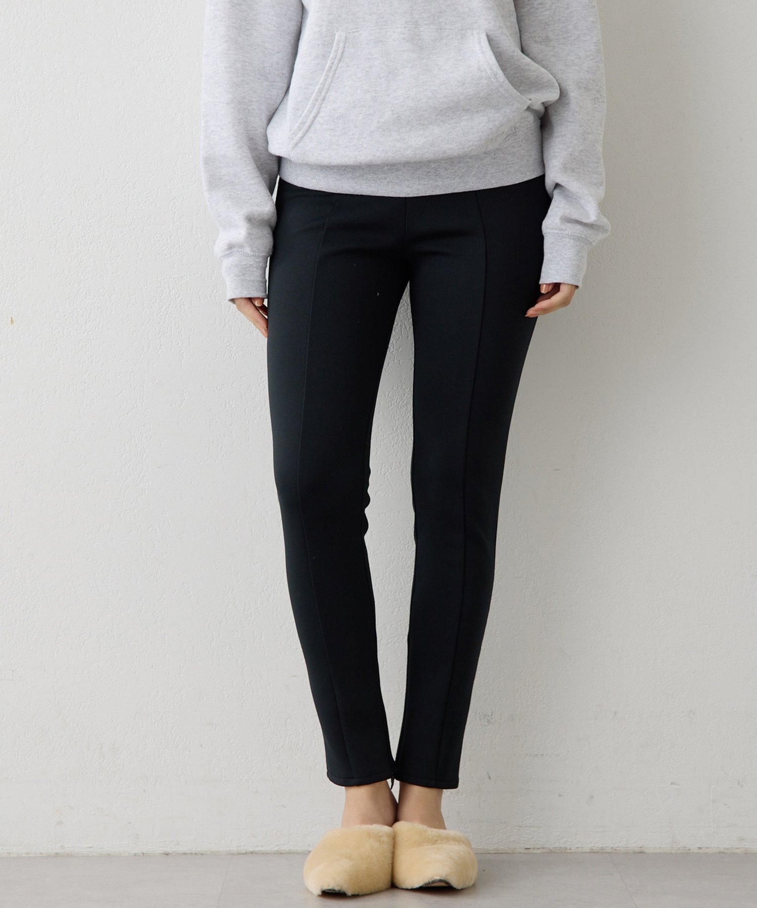 Эластичные брюки с внутренней молнией внизу.