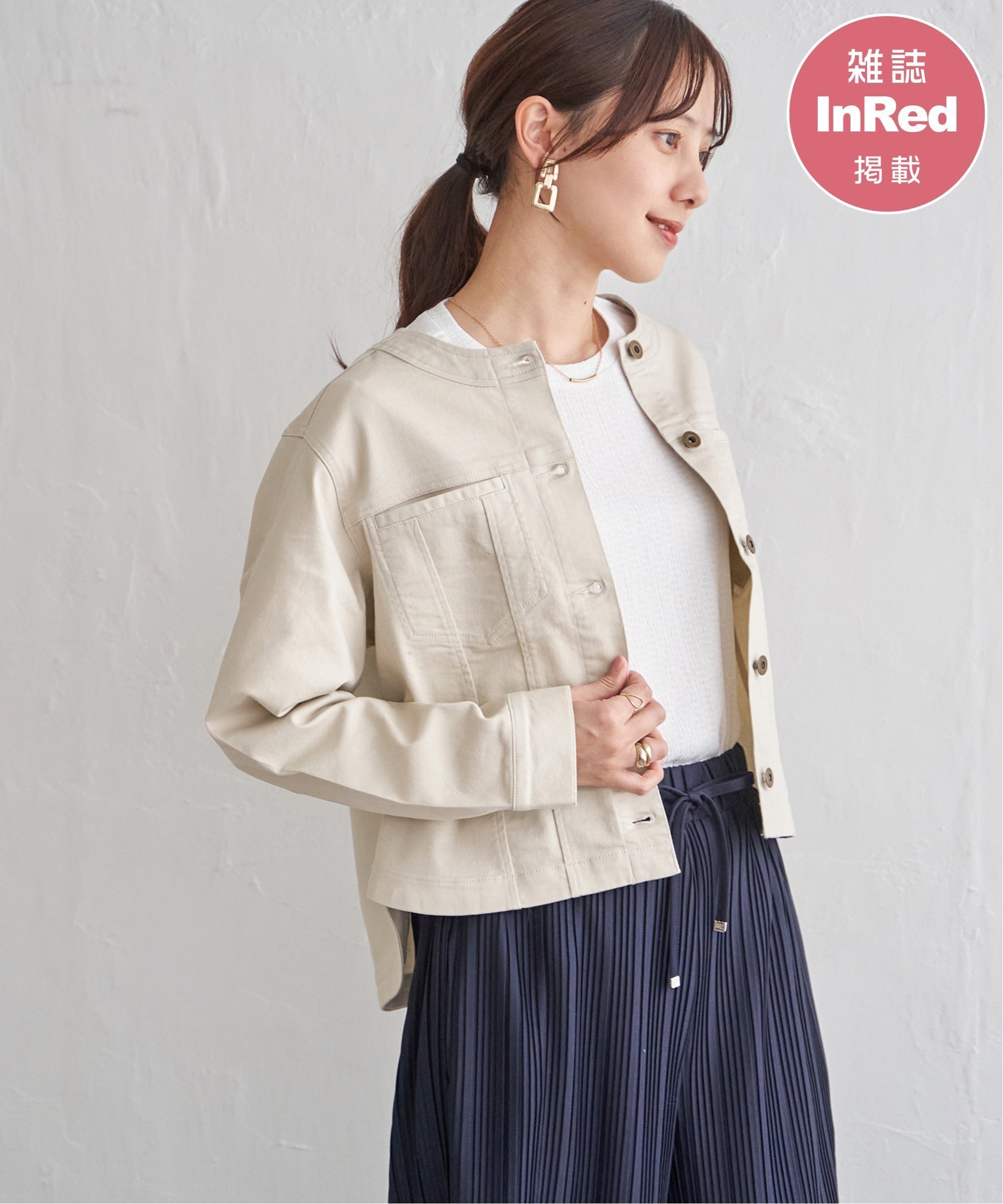 Созданная на основе классической джинсовой куртки, она имеет дизайн без воротника и закругленный нижний край для ощущения легкости.