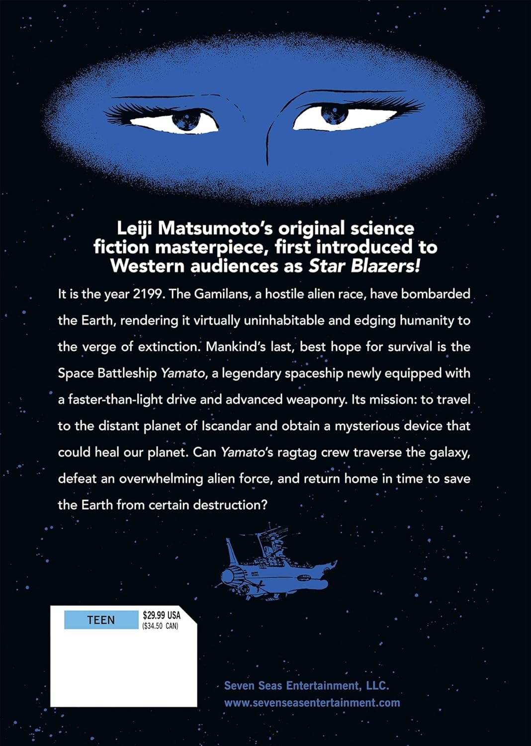 Оригинальный научно-фантастический шедевр Леидзи Мацумото, впервые представленный западной аудитории под названием «Звездные истребители!». 2199 год. Гамиланцы, враждебная инопланетная раса, бомбардировали Землю, сделав ее практически непригодной для жизни и поставив человечество на грань вымирания. Последняя и лучшая надежда человечества на выживание - космический линкор «Ямато», легендарный корабль, недавно оснащенный сверхсветовым двигателем и передовым вооружением. Его миссия: отправиться на далекую планету Искандар и заполучить таинственное устройство, способное исцелить нашу планету. Сможет ли разношерстная команда «Ямато» пересечь галактику, победить превосходящие силы инопланетян и вернуться домой вовремя, чтобы спасти Землю от неминуемой гибели?