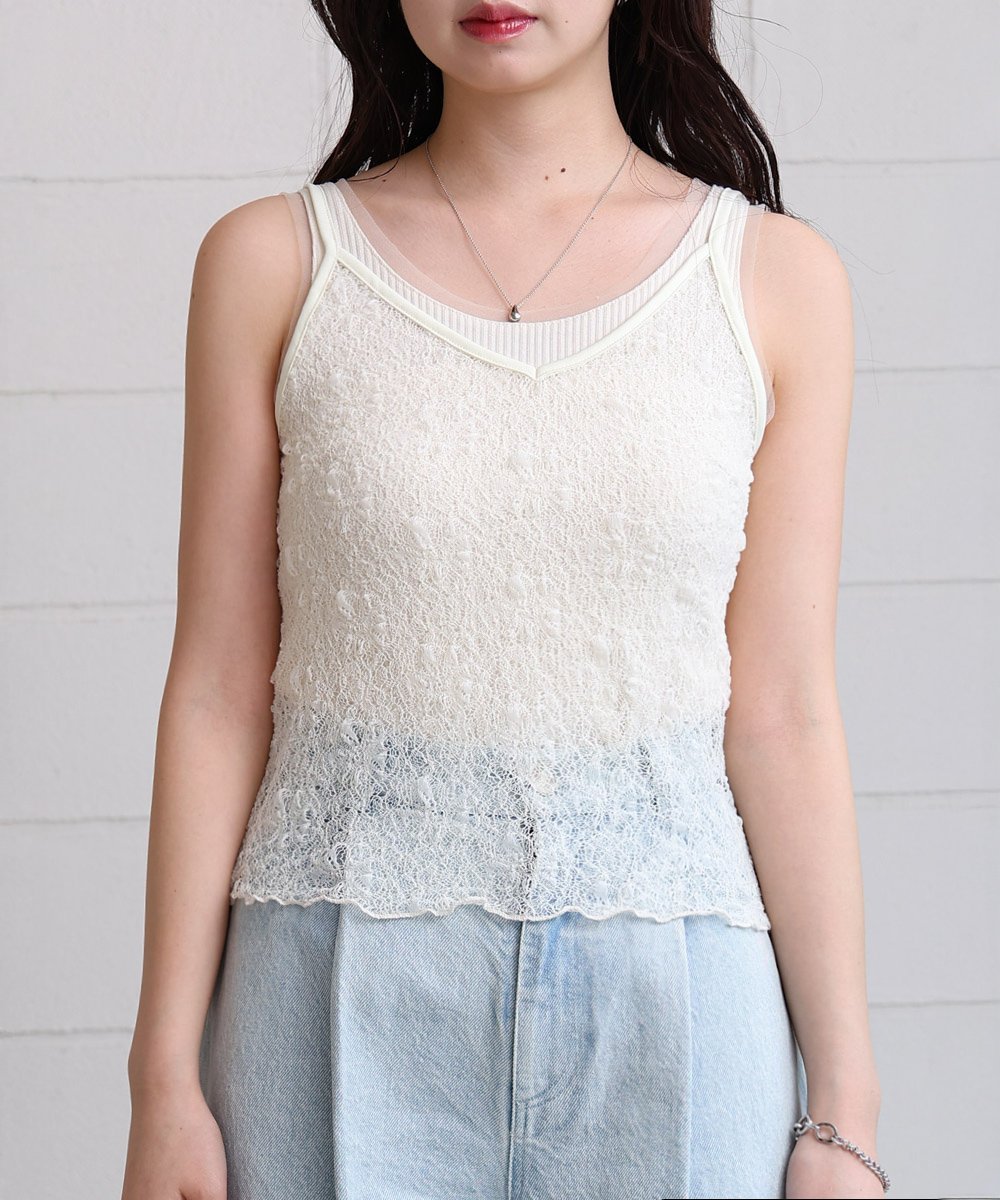 POINTПредставляем прозрачный кружевной топ-майку, который позволяет создавать модные многослойные образы! Мы также рекомендуем сочетать его с бюстье или рубашкой. Легкая прозрачность создает утонченную женственность и идеально подходит для многослойности. Доступен в белом, черном, бежевом и светло-голубом цветах.