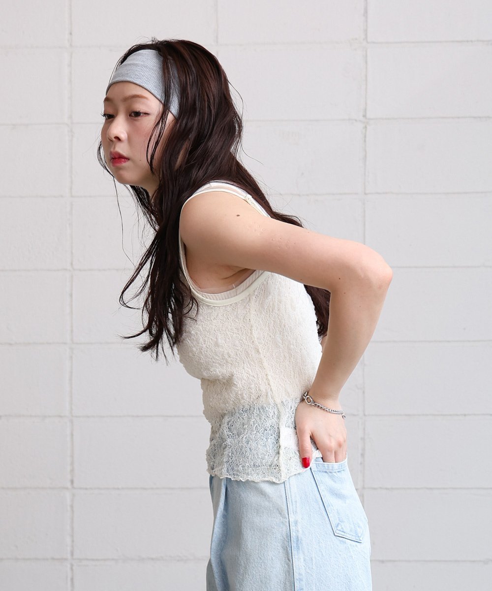 ТКАНЬОтличается трехмерным, случайным кружевным узором. Эта майка-майка изготовлена из нежного кружева и эластичного материала для повседневной носки.