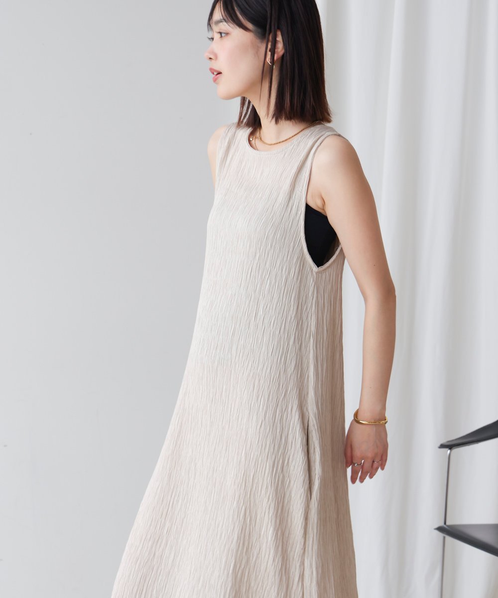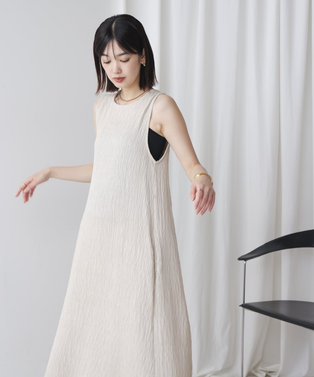 Платье без рукавов из фактурной креповой ткани.