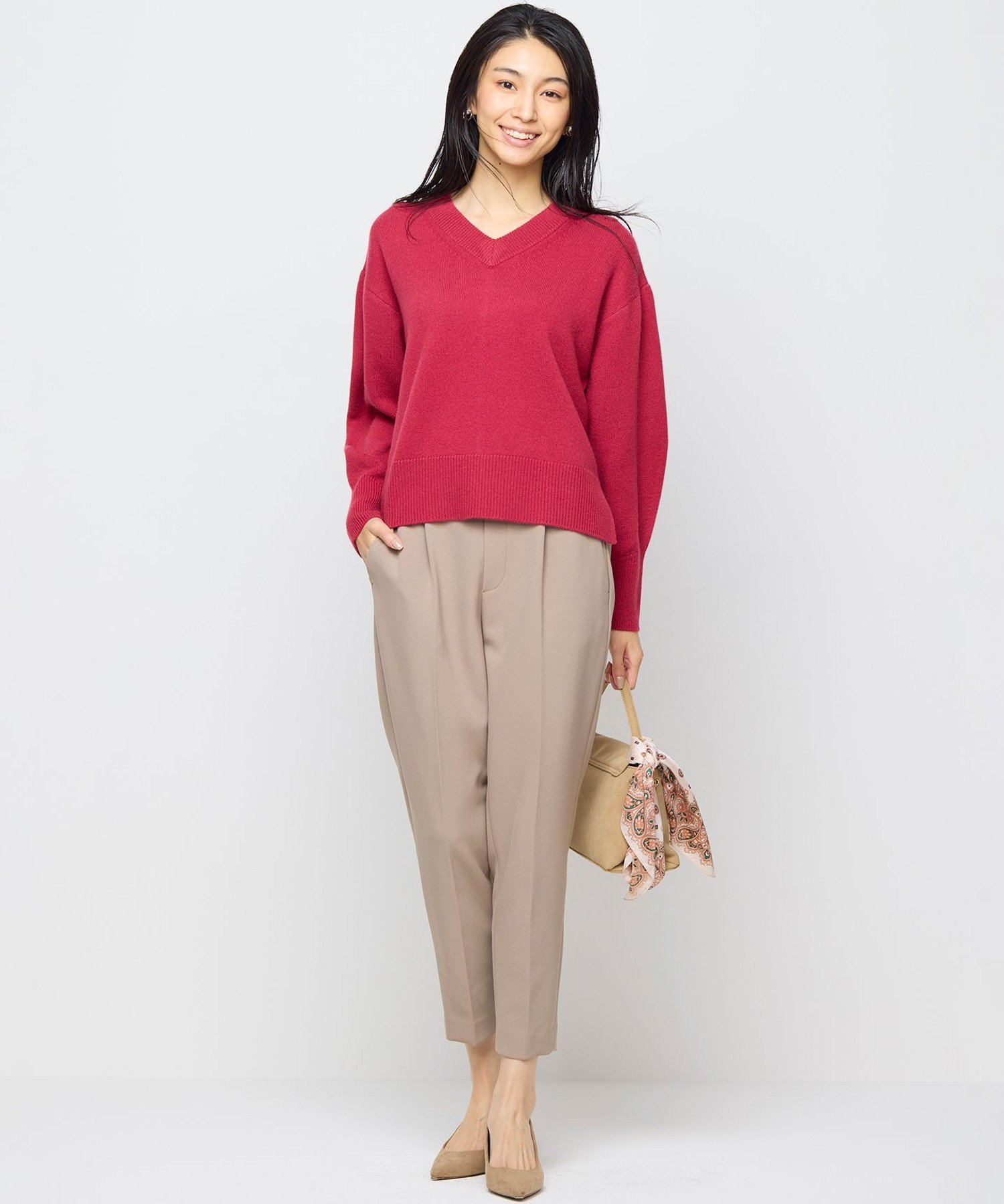 Серия «Шерсть-кашемир» \ Высококачественная смесь кашемира предлагает элегантные, красивые цвета. / Женственный V-образный вырез создает аккуратный, привлекательный образ. Дизайн: Этот женственный пуловер имеет неглубокий V-образный вырез спереди и сзади, создавая аккуратный, привлекательный образ. Рукава удобно сидят на некотором расстоянии от тела, а длинные манжеты с диагональной ребристой отделкой и глубокие боковые разрезы создают компактный, сбалансированный вид, придавая образу естественную изысканность. Задняя панель обеспечивает идеальный обзор спины, делая этот свитер простым, но эффектным. В зависимости от аксессуаров, которые вы с ним сочетаете, его можно носить как в повседневной жизни, так и на более торжественных мероприятиях. Материал: В этой смеси используется только лучший кашемир. Шерсть – это сверхтонкая шерсть, известная своей деликатной текстурой. Благодаря скручиванию двух типов пряжи достигается легкая, мягкая и пушистая текстура. Элегантные, яркие цвета, которые можно получить только с помощью высококачественной пряжи, также привлекательны.