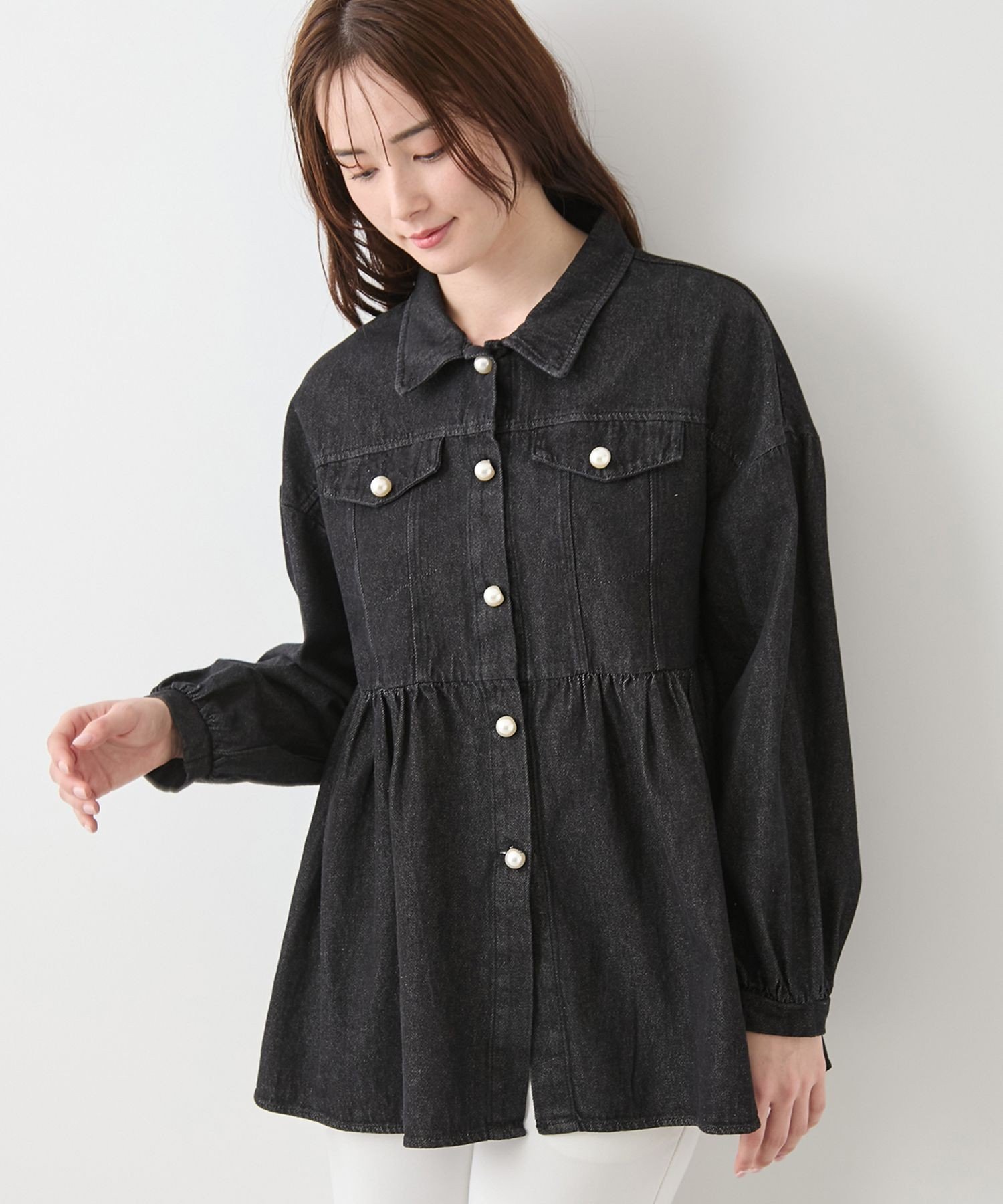 Жемчужные пуговицы добавляют нотку женственности.