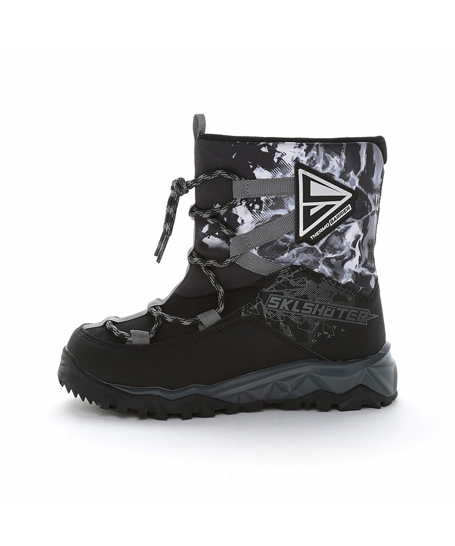 Эти зимние ботинки от Skill Shooter раскрывают многогранный потенциал мальчиков. Основанные на концепции «Раскрой свои навыки», подошва оснащена технологией «SKL», адаптированной к различным видам деятельности детей. Технология «SKL» активируется при ходьбе. «Ice Fang Skill» имеет шиповидные элементы «SKL», вдохновленные острым льдом, похожим на клыки, которые активируются при ходьбе, обеспечивая улучшенное сцепление. Эти зимние ботинки отличаются эффектным дизайном с крутым рисунком из измельченных ледяных блоков. Они оснащены уникальной технологией THERMOBARRIER, которая улучшает сохранение тепла и защищает от холодного воздуха с земли. Они также имеют водонепроницаемую конструкцию (глубина 4 см, 4 часа), рекомендованную для использования в снежных условиях. Вес каждой ботинки составляет приблизительно 340 г (21,0 см).