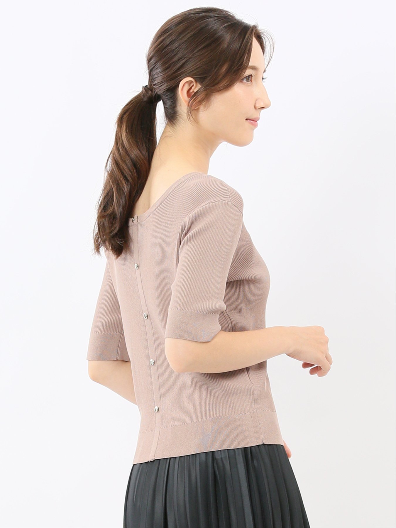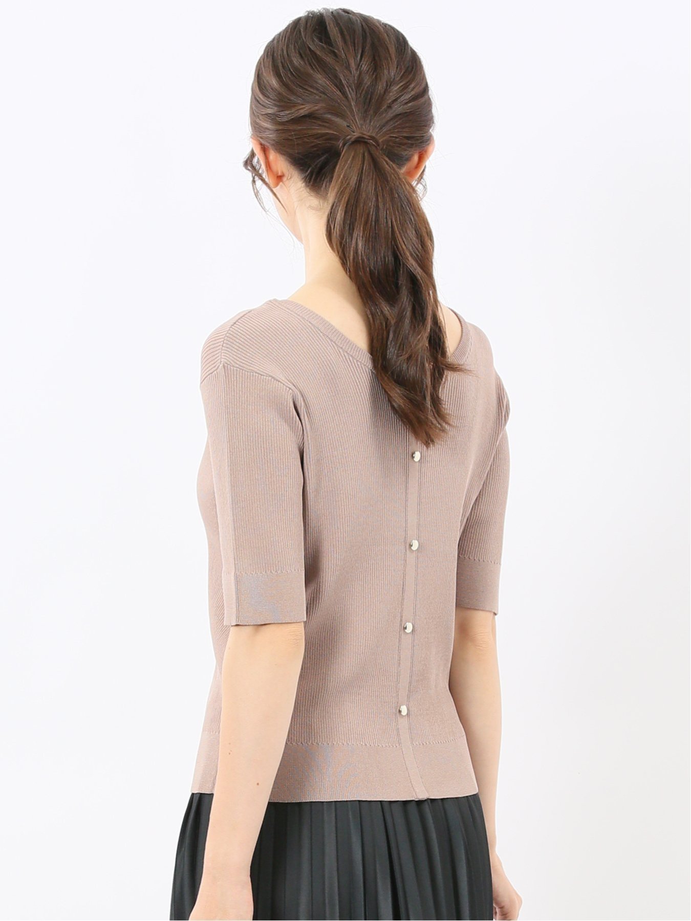 Этот вязаный свитер с коротким рукавом, двусторонний, можно носить как спереди, так и сзади. Застегните его на пуговицы для создания образа кардигана или как пуловер, застегнув на пуговицы сзади. Его дизайн дополняет как повседневные, так и элегантные образы.