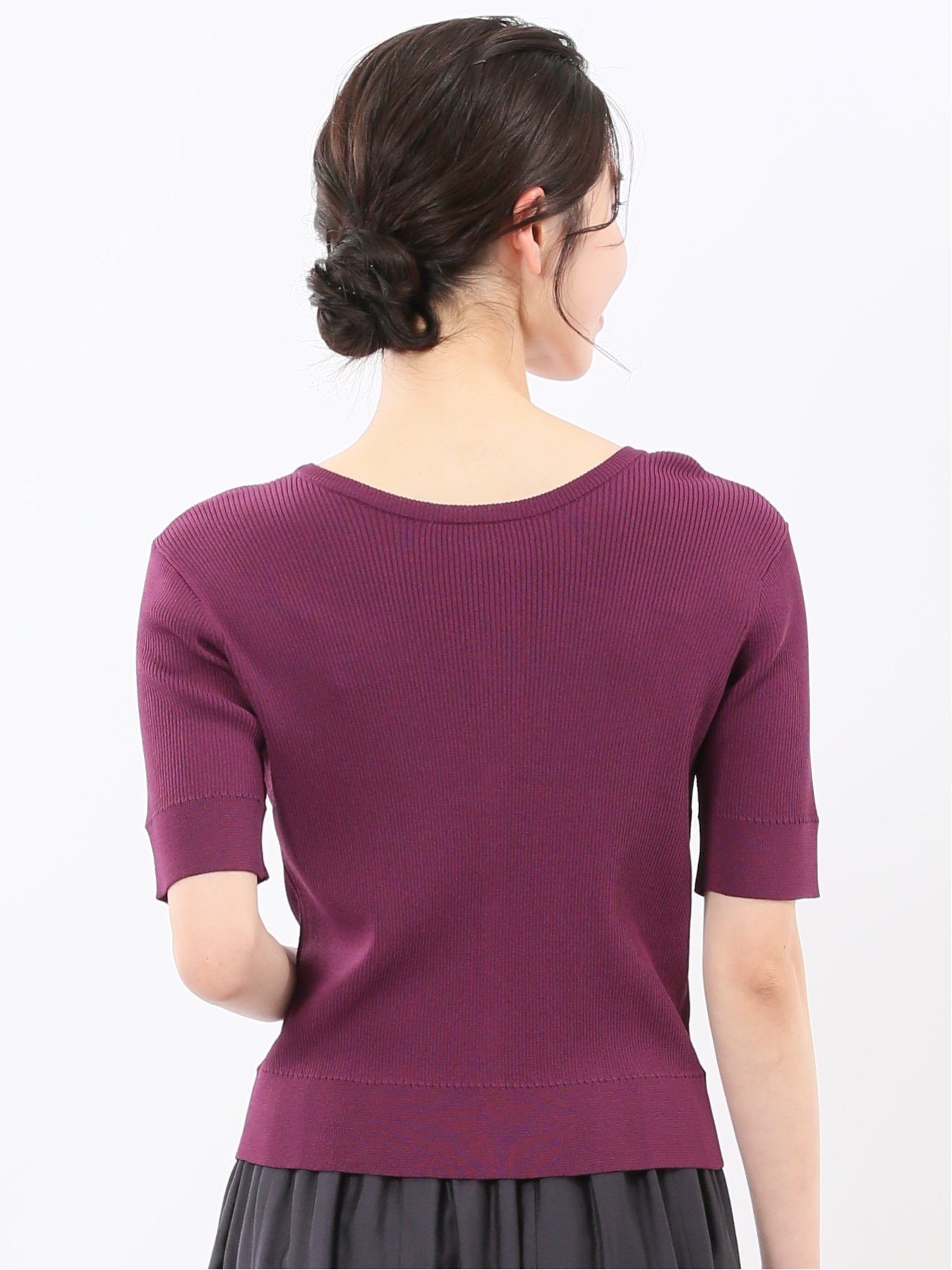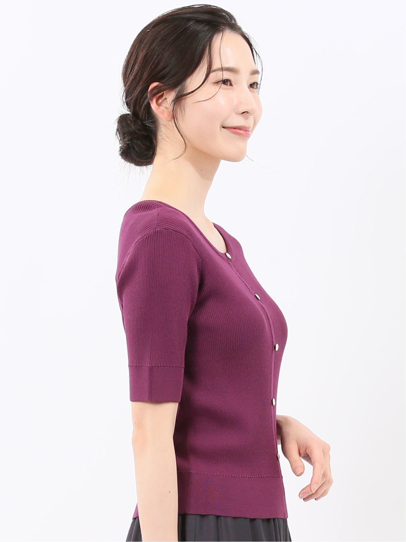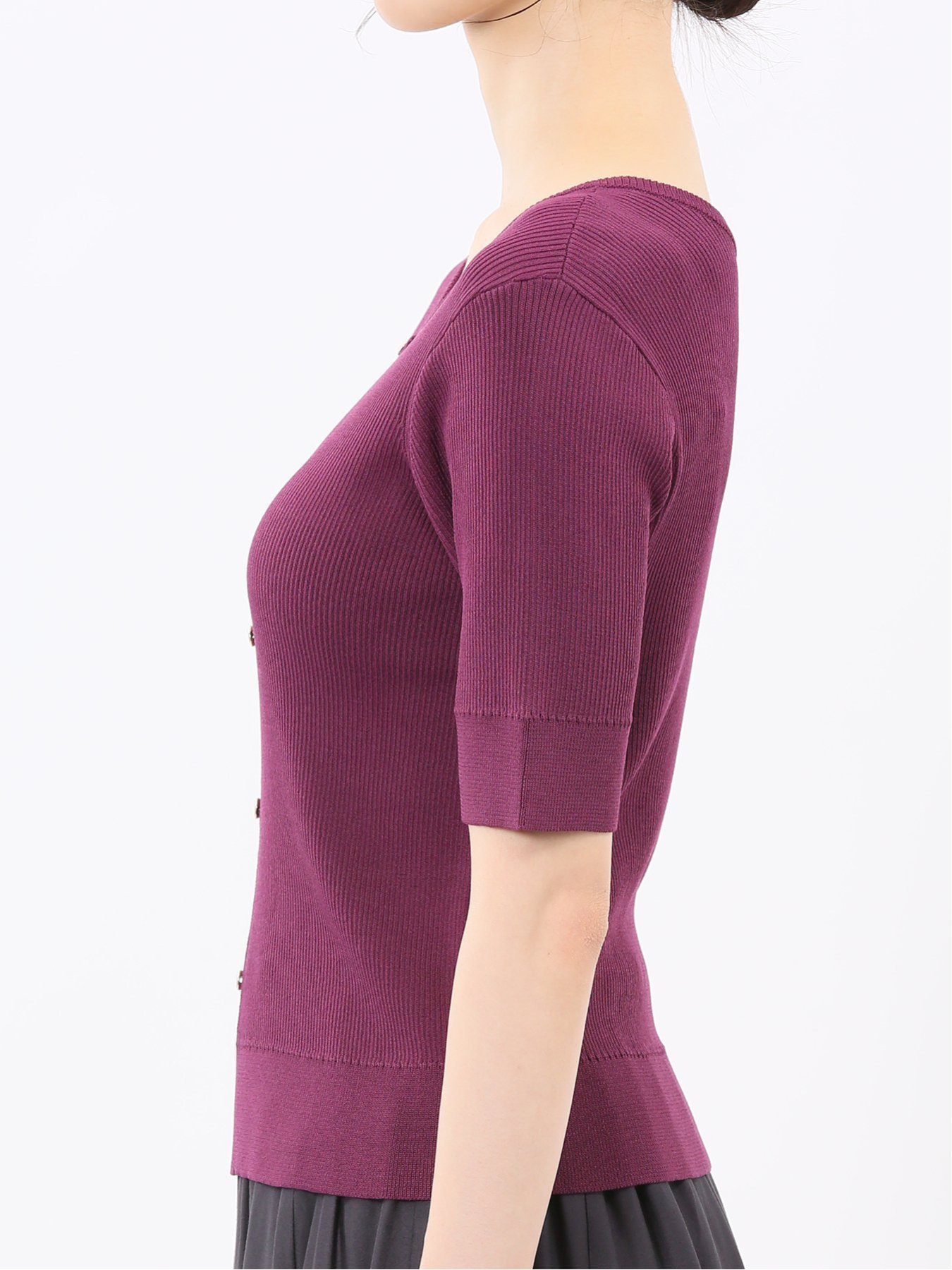 Этот вязаный свитер с коротким рукавом, двусторонний, можно носить как спереди, так и сзади. Застегните его на пуговицы для создания образа кардигана или как пуловер, застегнув на пуговицы сзади. Его дизайн дополняет как повседневные, так и элегантные образы.