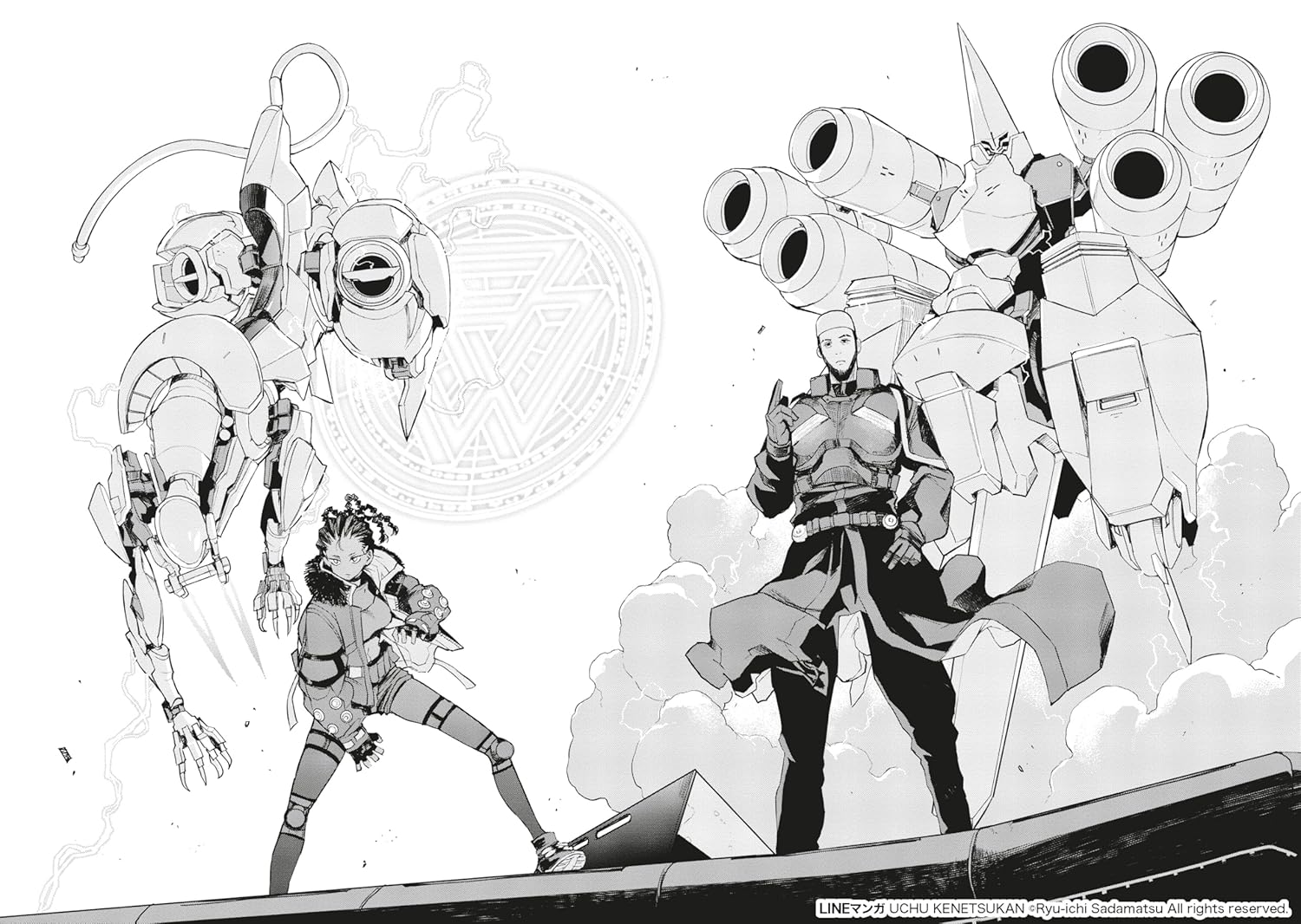 Для поклонников манги о мехах этот том предлагает захватывающие сражения роботов и инновационные технологии, расширяющие границы жанра. Рюичи Садамацу, известный своим захватывающим повествованием и динамичным рисунком в таких произведениях, как Buster Dress и Eirun Last Code, продолжает впечатлять своим уникальным умением сочетать сложные стратегии и напряженный экшен. Его фантастические иллюстрации погружают читателей в истерзанный войной мир, где технологии, монстры и метеориты представляют собой неумолимую угрозу.
