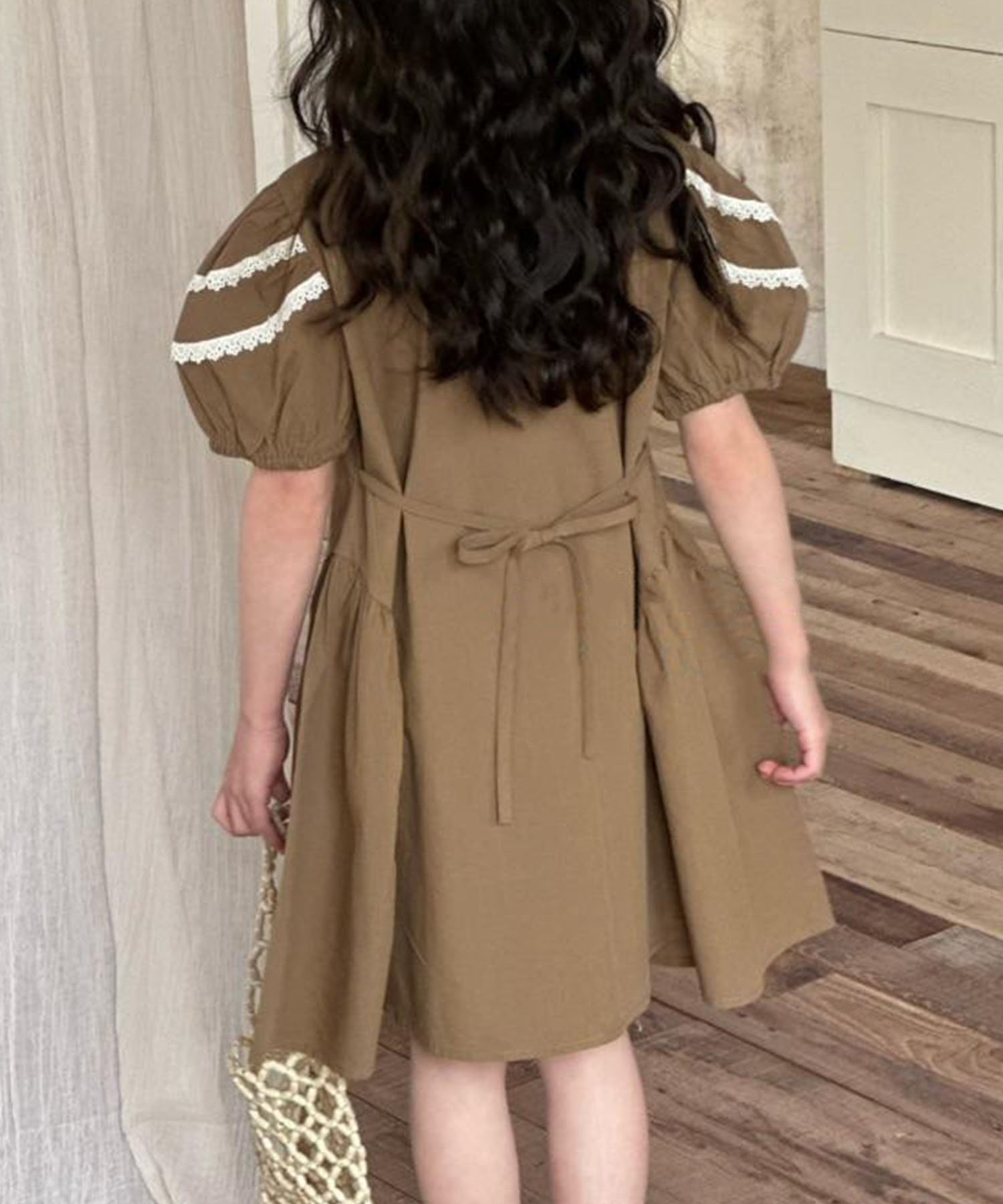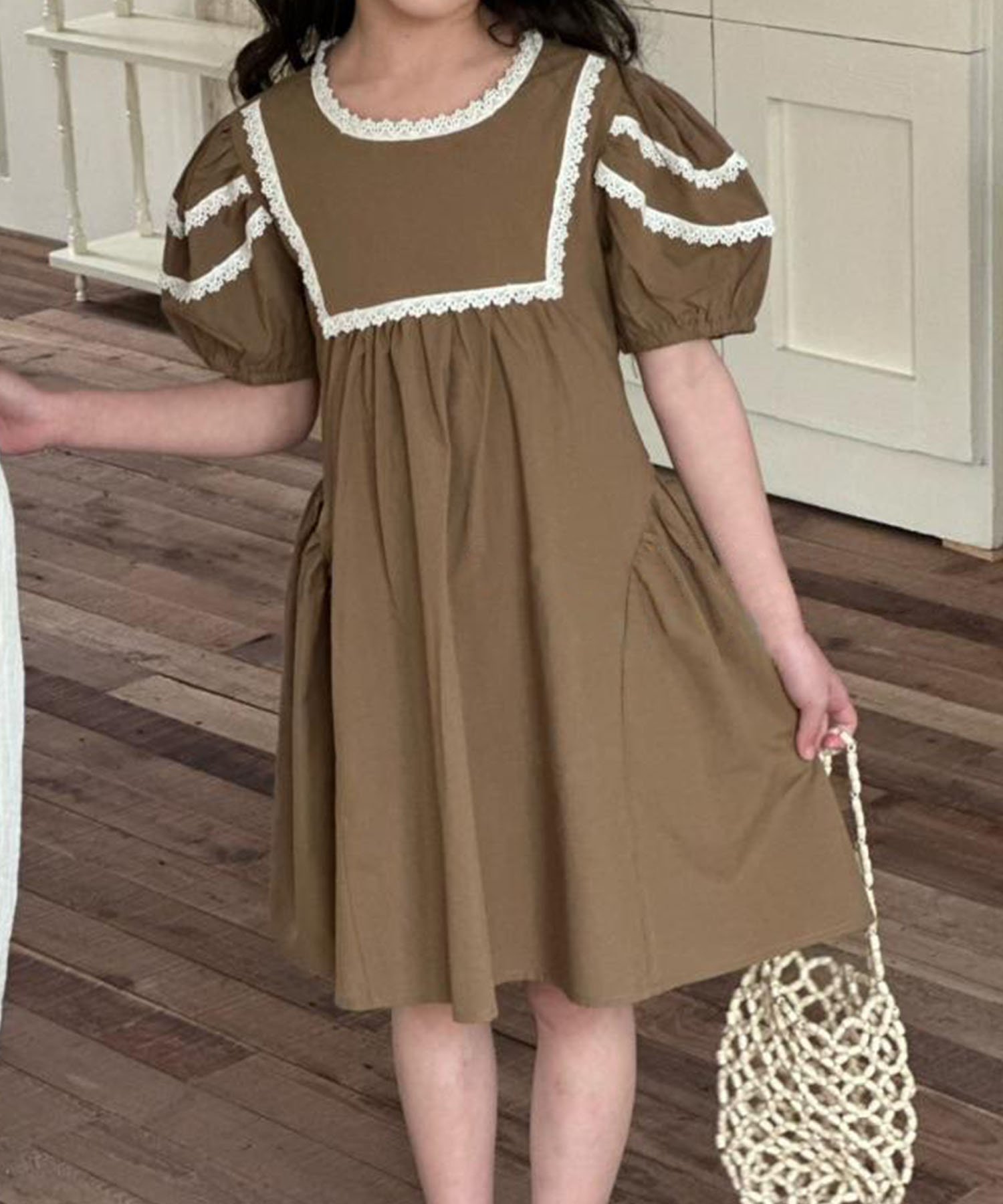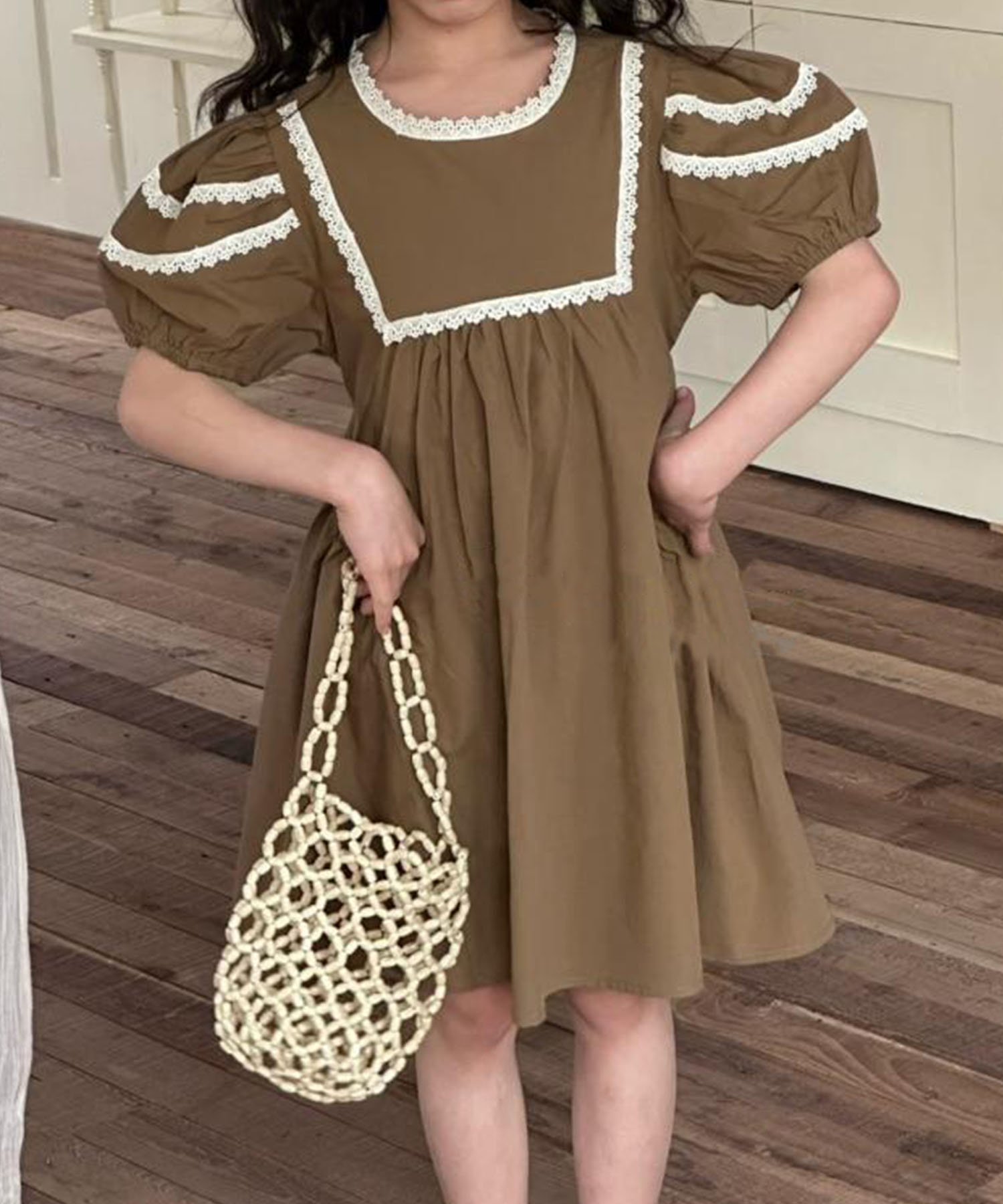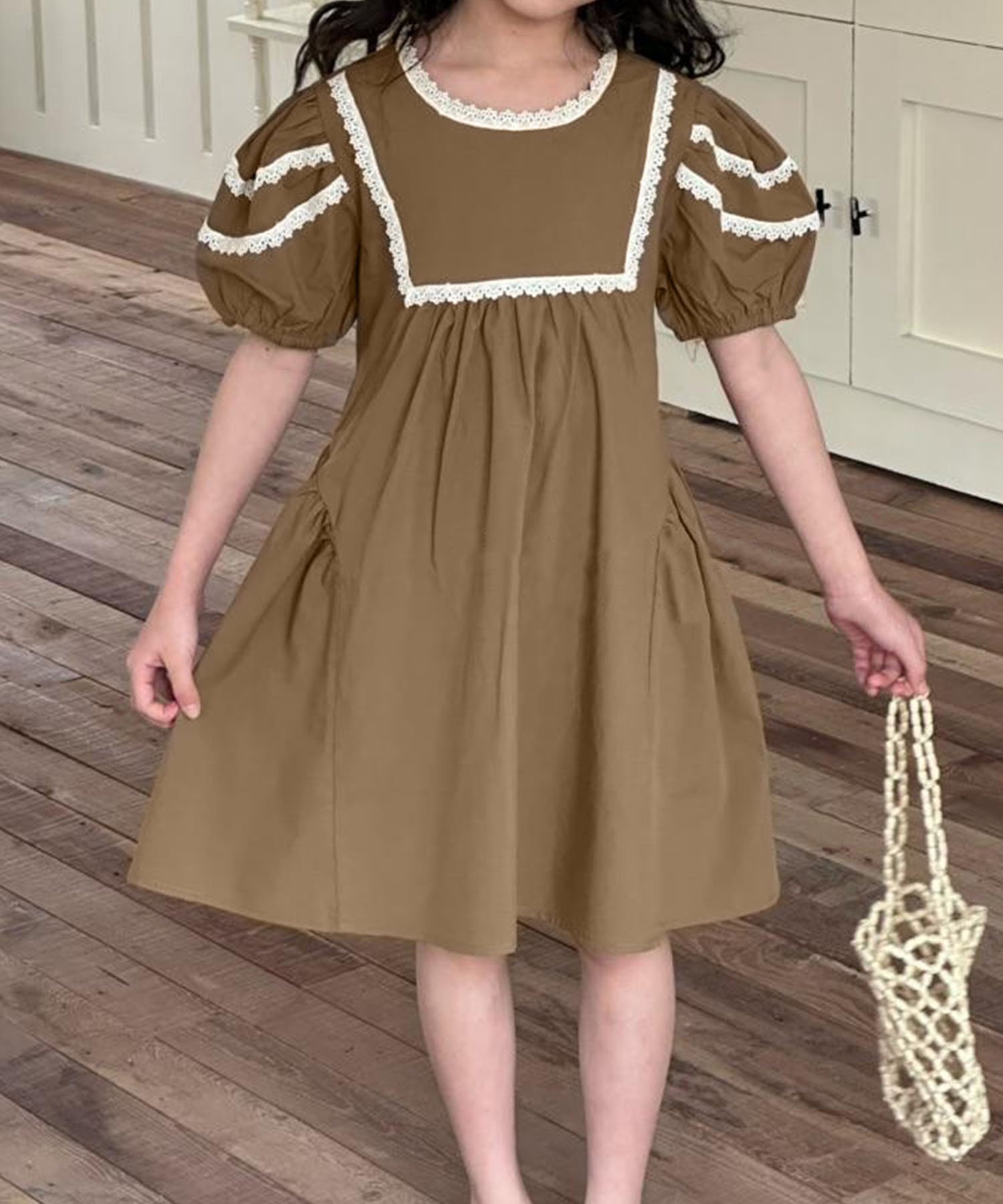 Это девичье платье — стильная вещь с классическим квадратным воротником и мягкими пышными рукавами. Кружевные линии спереди и на рукавах добавляют акцент, подчеркивая элегантный и милый образ. Мягко расклешенный А-образный силуэт обеспечивает свободу движений и удобную посадку. Это универсальная вещь, которую можно носить как каждый день, так и на выход.