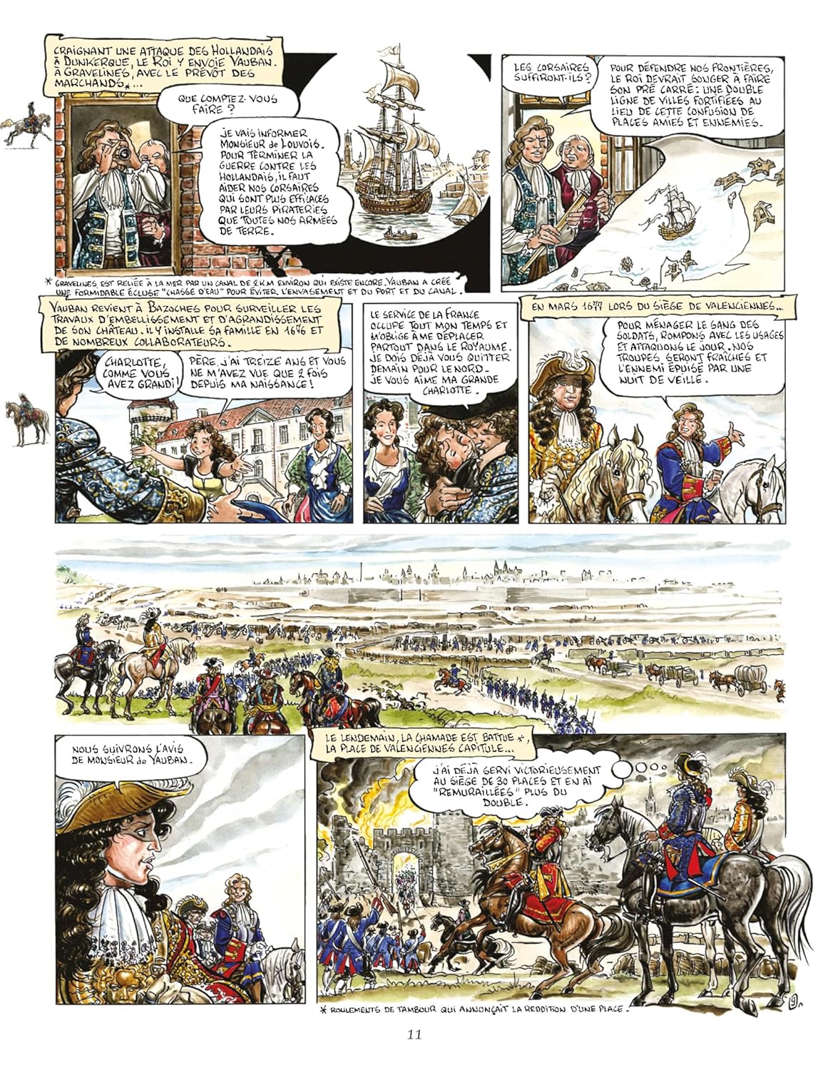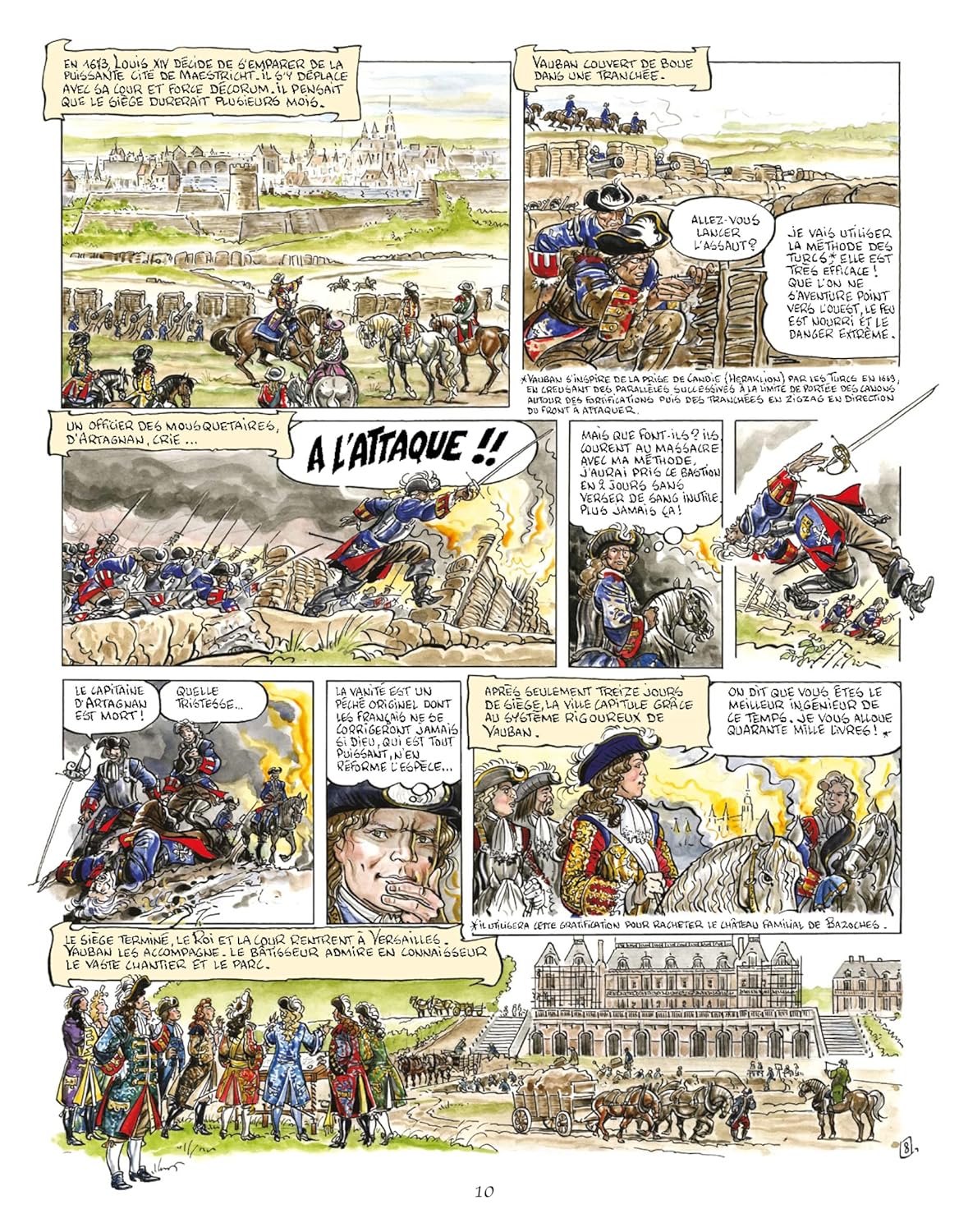 Выдающаяся жизнь Вобана, батиссер укреплений был с другими австралийцами, путешественниками, писателями, людьми местности и гениями. Иллюстратор персонажа, который снова появился на BD. «Жизнь Вобана, модель эпохи, предлагает мгновенное внимание и эмоции. Ce n'est pas seulement une histoire pour spécialistes, bâtisseurs ou militaires, c'est une vie d'Exception (...) Il ya des Courses folles, des batailles, des fracas de mers et de montagnes, des ruses, des изобретений, des secrets, des sidérants pour ne pas dire fous (...) Cet homme d'action et de pensée n'a eu de cesse de Perfectionner tout ce qu'il touchait, d'exiger le meilleur, d'ordonner l'impossible. » Экспорт предисловия к BD от Арно д'Оне.