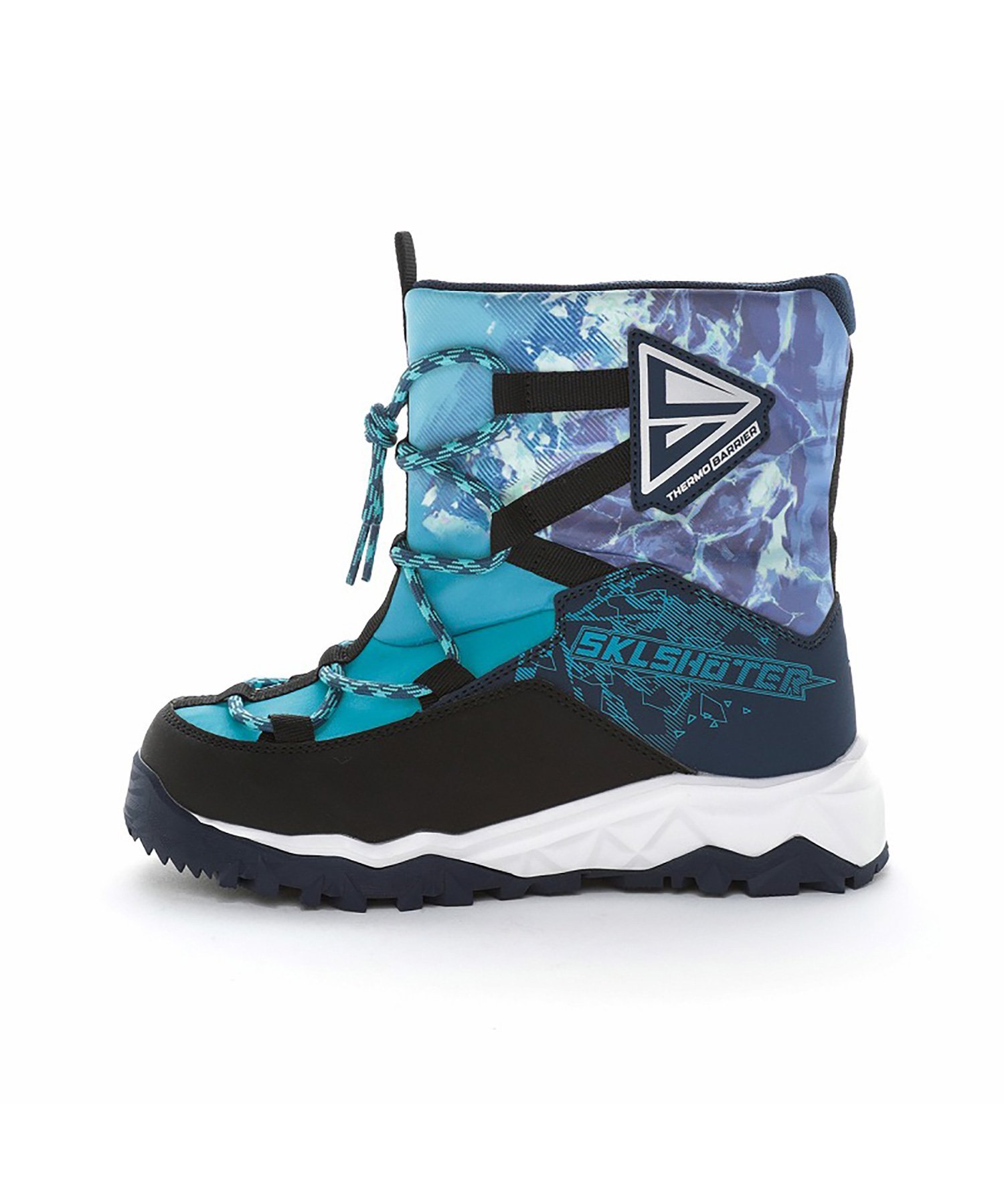Эти зимние ботинки от Skill Shooter раскрывают многогранный потенциал мальчиков. Основанные на концепции «Раскрой свои навыки», подошва оснащена технологией «SKL», адаптированной к различным видам деятельности детей. Технология «SKL» активируется при ходьбе. «Ice Fang Skill» имеет шиповидные элементы «SKL», вдохновленные острым льдом, похожим на клыки, которые активируются при ходьбе, обеспечивая улучшенное сцепление. Эти зимние ботинки отличаются эффектным дизайном с крутым рисунком из измельченных ледяных блоков. Они оснащены уникальной технологией THERMOBARRIER, которая улучшает сохранение тепла и защищает от холодного воздуха с земли. Они также имеют водонепроницаемую конструкцию (глубина 4 см, 4 часа), рекомендованную для использования в снежных условиях. Вес каждой ботинки составляет приблизительно 340 г (21,0 см).