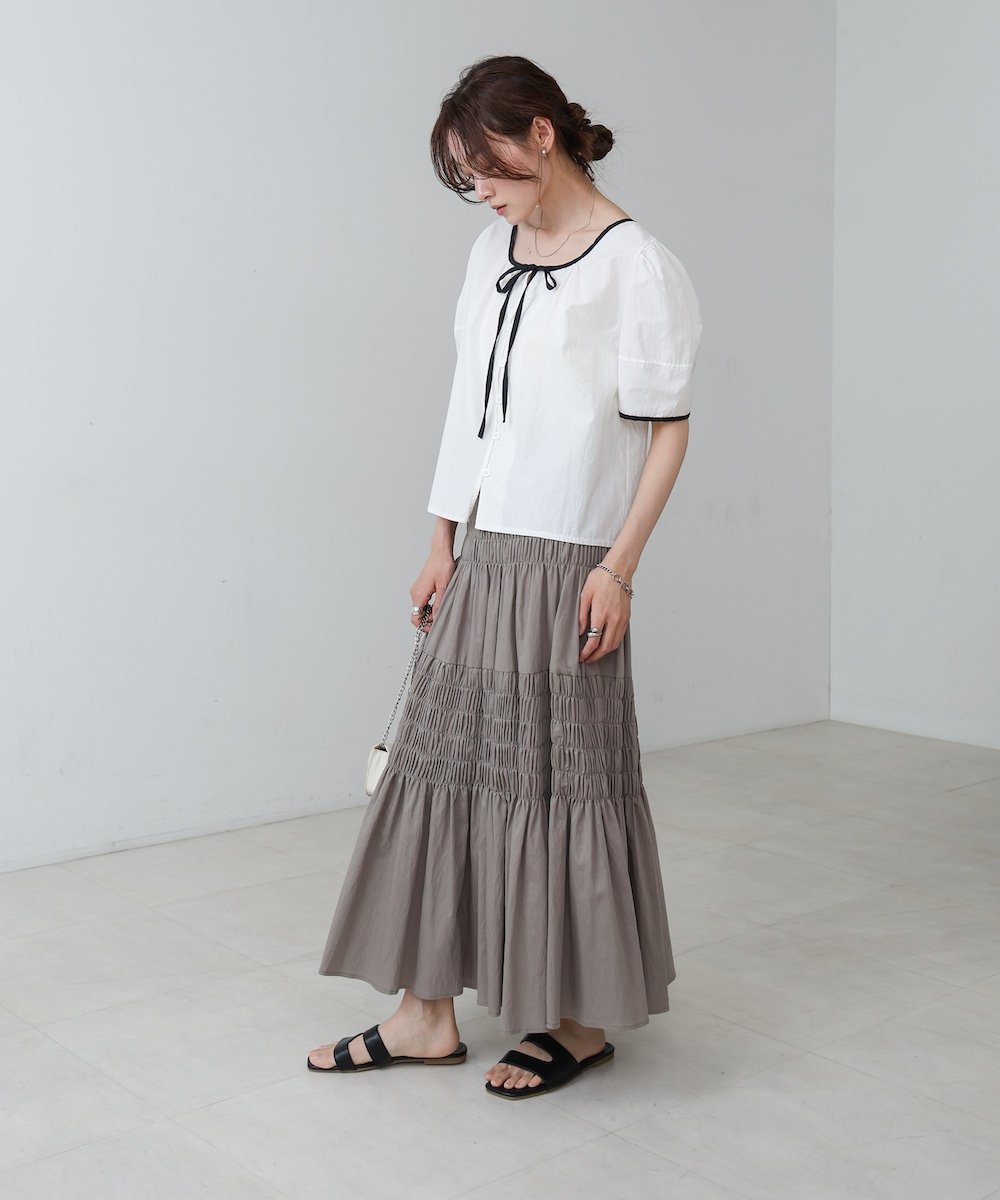 СОЧЕТАСочетайте с зауженными брюками для делового стиля или с расклешенной юбкой для стильного образа, идеально подходящего для особых случаев. Наденьте его под юбку-свитер или платье-комбинацию, и ленточные акценты создадут сладкое и пикантное сочетание. ◎