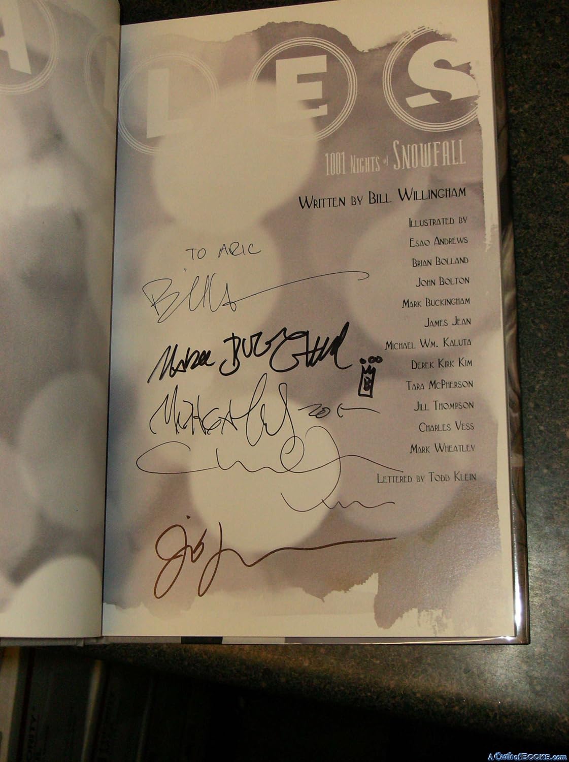 Книга, полная предысторий сказочных и фольклорных персонажей популярного комикса «Басни», получает достойное, по праву, изысканное оформление. Каждая история в ней нарисована разными художниками, каждый из которых демонстрирует свой неповторимый стиль, варьирующийся от традиционного комиксного реализма и фотореалистичного натурализма до роскоши в духе Максфилда Пэрриша и Говарда Пайла, а также множества карикатурных приемов. Книга полностью иллюстрирована и выходит в твердом переплете. Но хороша ли она? Одним словом, да. Из сказочного города Манхэттена конца XIX века Белоснежка отправляется ко двору арабского султана на родину, чтобы заручиться его поддержкой в борьбе против Противника, который изгнал европейских сказок, но еще не угрожает ближневосточному контингенту. Правитель заманивает ее в ловушку, и она, подобно Шахерезаде, должна рассказать ему основное содержание книги, чтобы остаться в живых, одновременно добиваясь его сотрудничества. Эти истории одновременно остроумны и психологически раскрывают характеры персонажей, появляющихся в продолжающейся, современной истории «Басни». Рэй Олсон