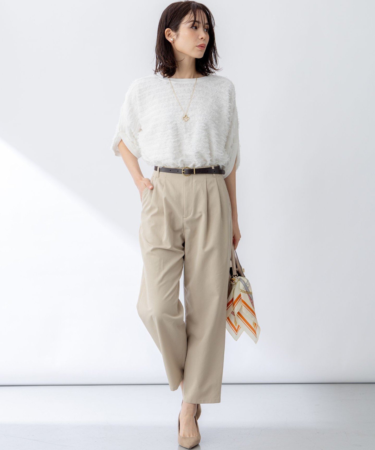 Дизайн: Эти брюки с завышенной талией и двумя складками, зауженные книзу, напоминают чиносы, но ткань имеет красивую, струящуюся текстуру, создавая изысканный образ. Эластичный пояс сзади обеспечивает удобную посадку и объем. Мы рекомендуем сочетать эти брюки с аккуратным, компактным силуэтом и подчеркнуть его поясом. 002: Полностью на подкладке / 033 и 005: Без подкладки.
