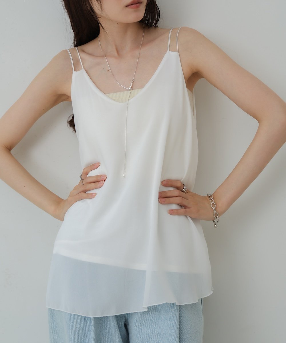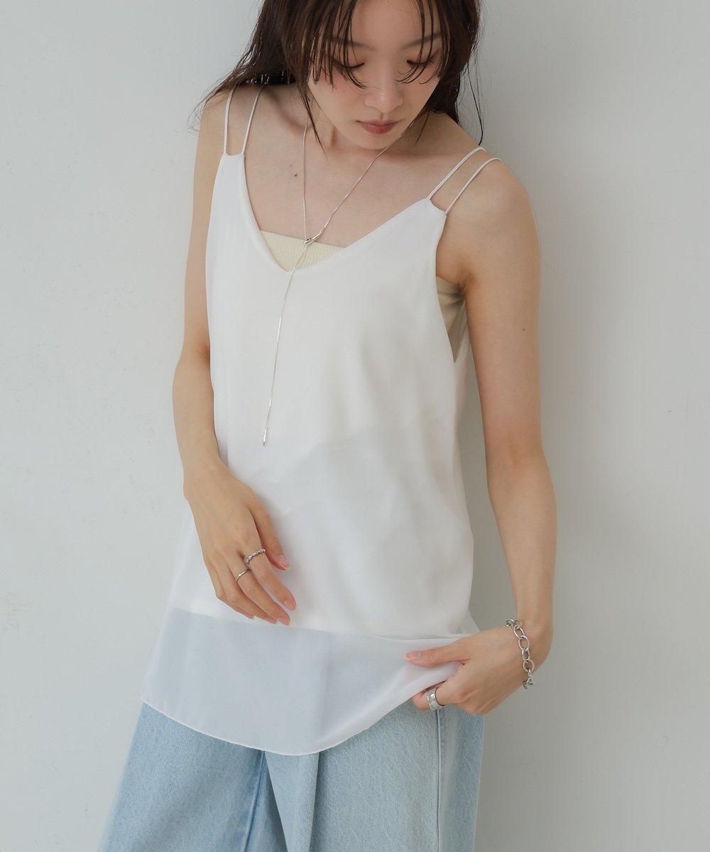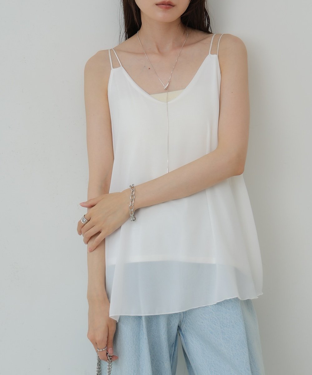 POINTЭлегантный, женственный топ с изящными двойными бретелями, придающими ему утонченный вид. Умеренный V-образный вырез прекрасно подчеркивает декольте, а конструкция не позволяет нижнему слою быть видимым, поэтому вы можете носить его самостоятельно с уверенностью. Простая, но изысканная вещь, которая добавит акцент к многослойному стилю.