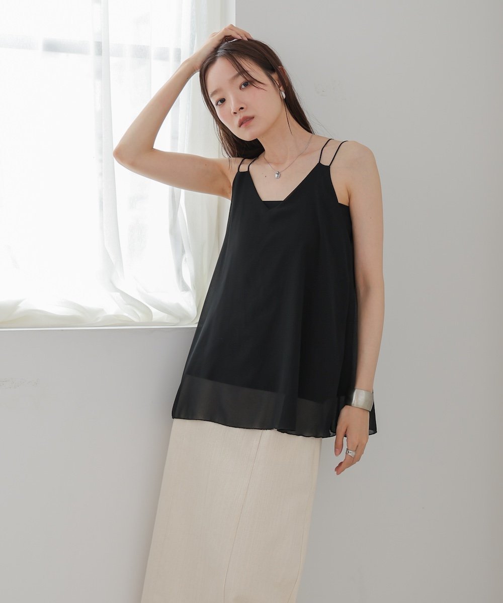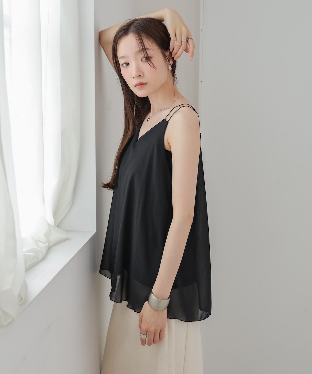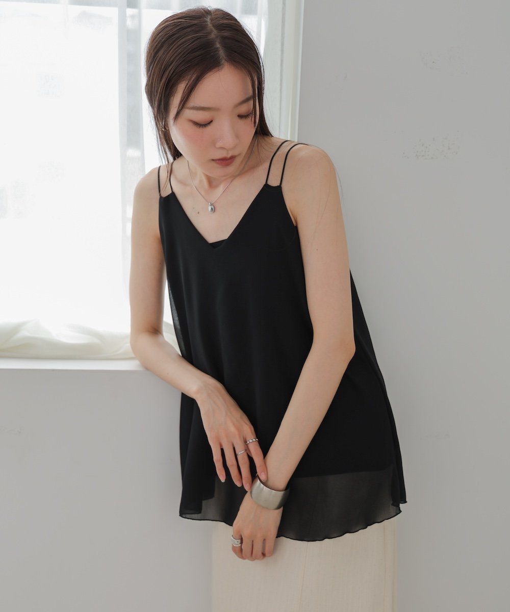 POINTЭлегантный, женственный топ с изящными двойными бретелями, придающими ему утонченный вид. Умеренный V-образный вырез прекрасно подчеркивает декольте, а конструкция не позволяет нижнему слою быть видимым, поэтому вы можете носить его самостоятельно с уверенностью. Простая, но изысканная вещь, которая добавит акцент к многослойному стилю.