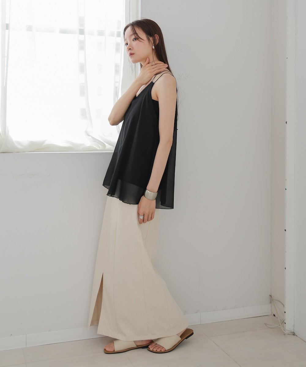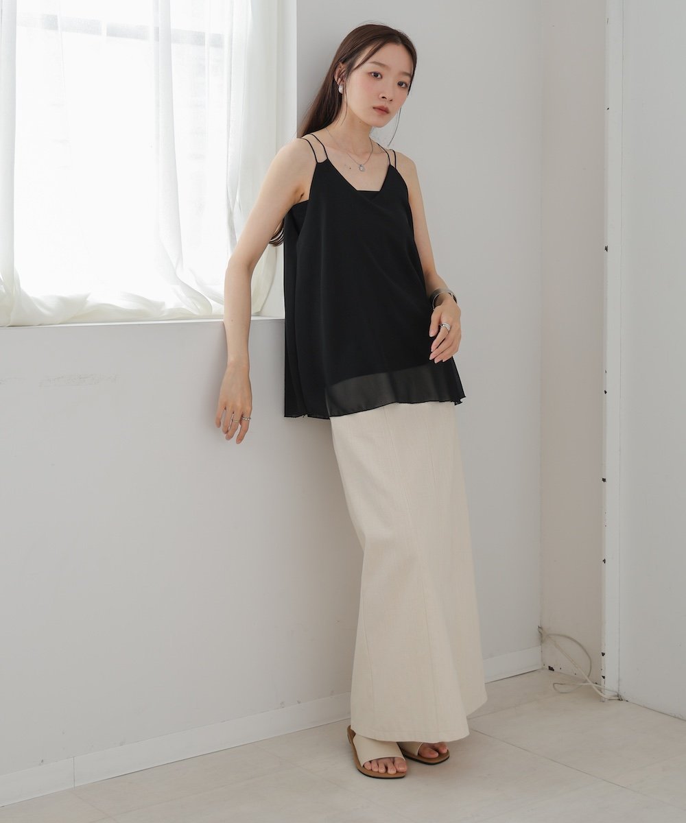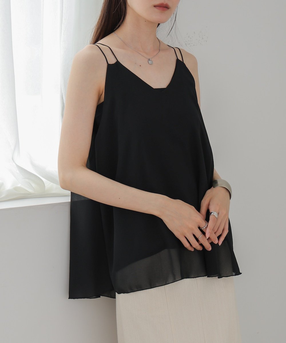 POINTЭлегантный, женственный топ с изящными двойными бретелями, придающими ему утонченный вид. Умеренный V-образный вырез прекрасно подчеркивает декольте, а конструкция не позволяет нижнему слою быть видимым, поэтому вы можете носить его самостоятельно с уверенностью. Простая, но изысканная вещь, которая добавит акцент к многослойному стилю.