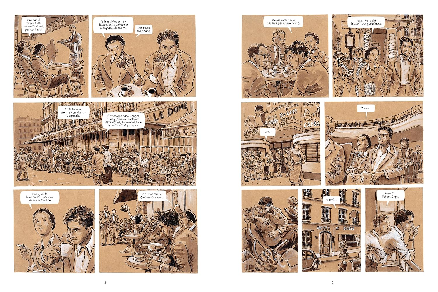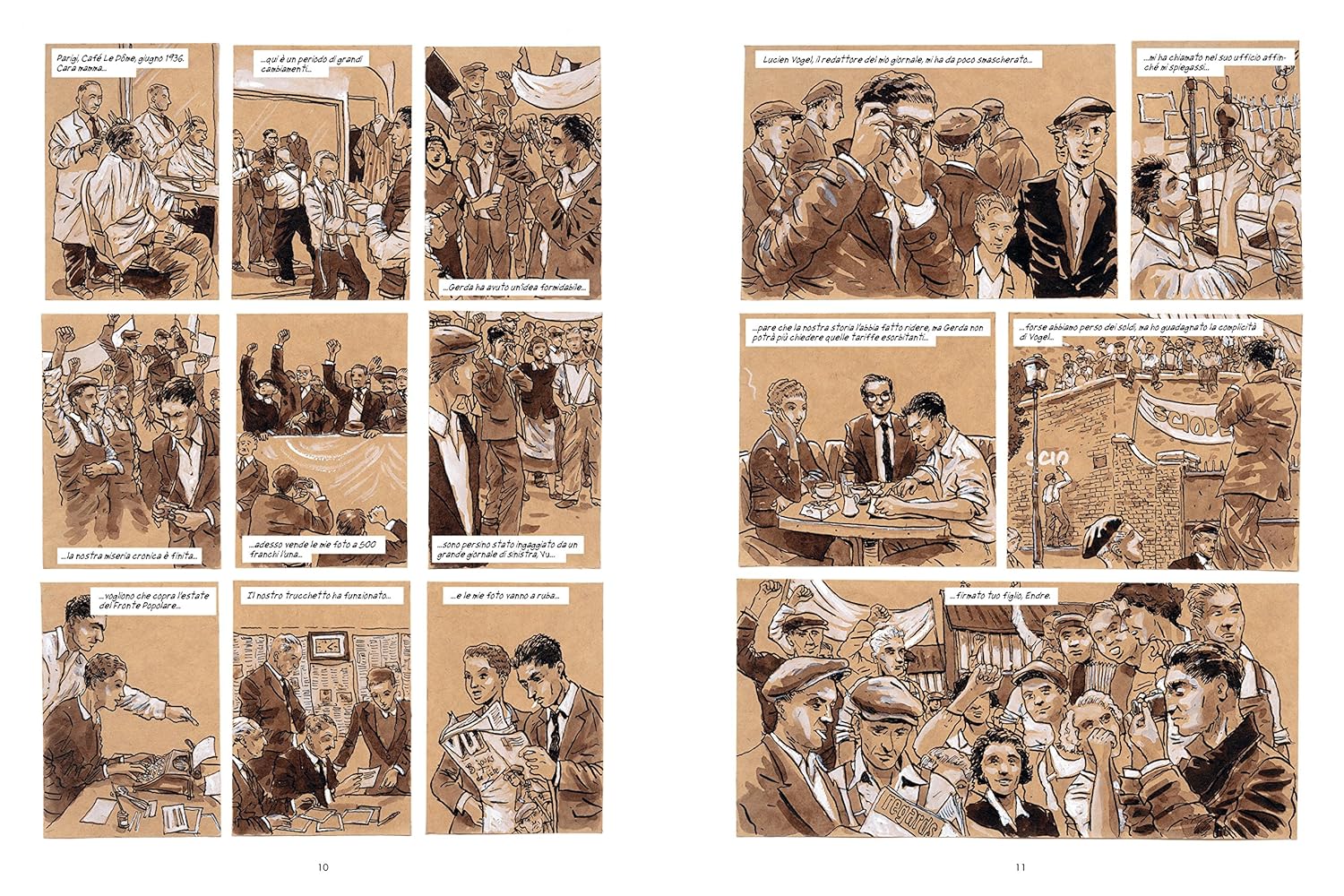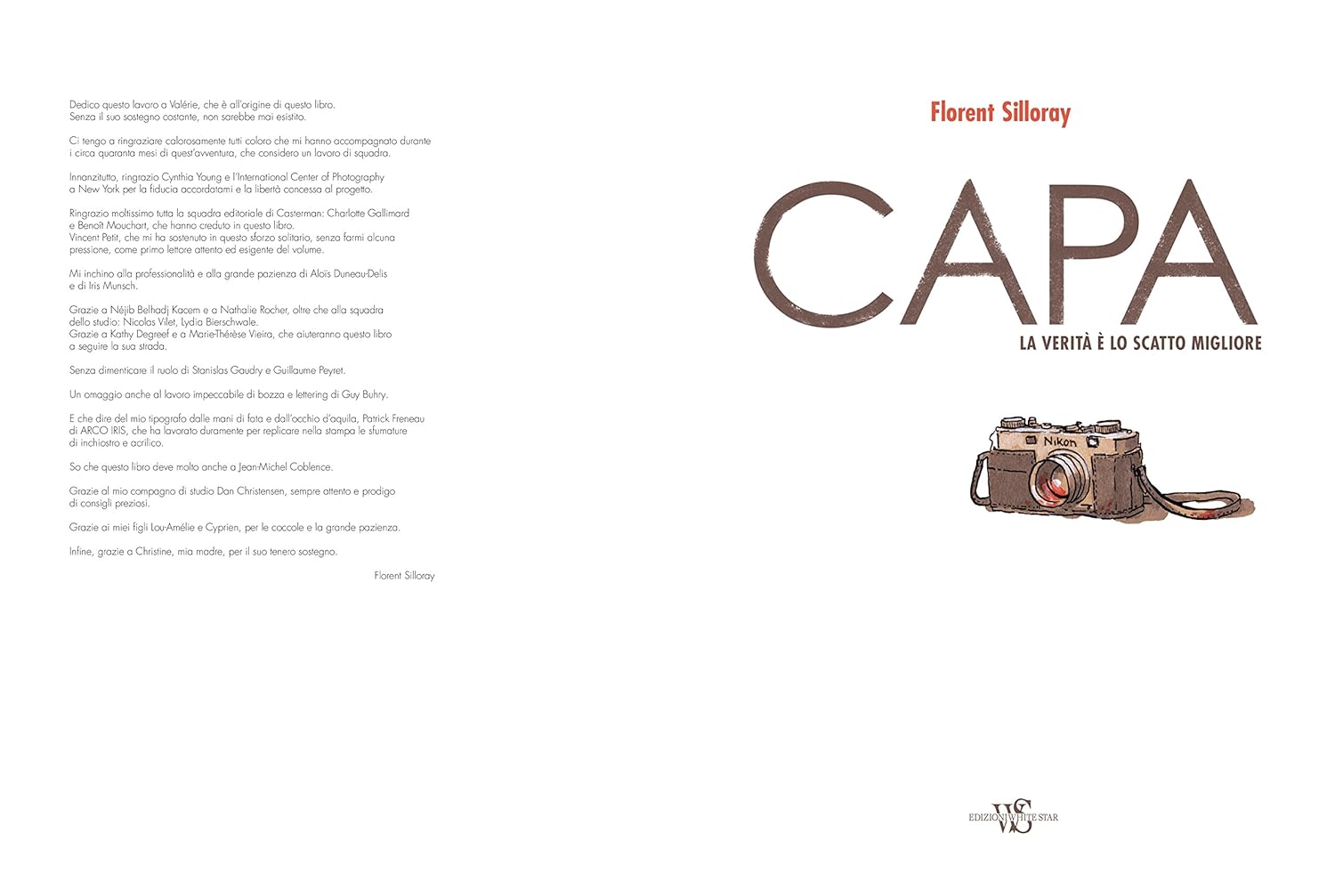 Учитывая, вероятно, самый большой фотограф истории войны, в год жизни Роберта Капа сделал репортаж об одном из самых ужасных моментов в мире, в войне в Испании - le cui immagini lo resero noto in the tutto il mondo - allo Sbarco в Нормандии, в Кампанье d'Италия во Вьетнаме. Эта биография, которая позже стала соответствовать жизни великого художника, всегда в центре дел, свидетельствует об исключительном потенциале диструттивы и глупости ума. Я задумал Флорана Силлорэ, из реалистичного и характерного тонального сеппиата, идеально воссозданного в атмосфере Анни Тренты и приключенческих мест, отмеченных разбросанными фотографиями знаменитостей, идеально похожих на жизнь и оперу маэстро.